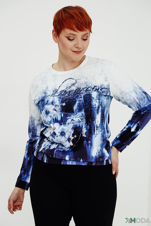 Женский джемпер Thomas Rabe синего цвета с оригинальным цветочным принтом и эффектом tie-dye. Модель выполнена из мягкого и приятного к телу трикотажа, обеспечивающего комфорт в носке. Состав: хлопок 47%, модал 47%, эластан 6%