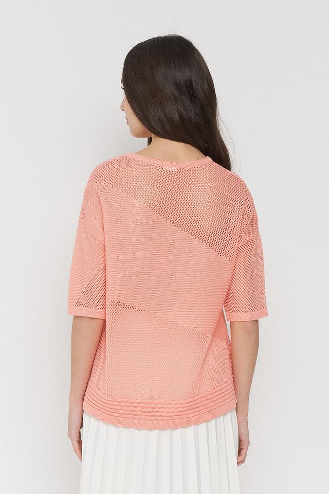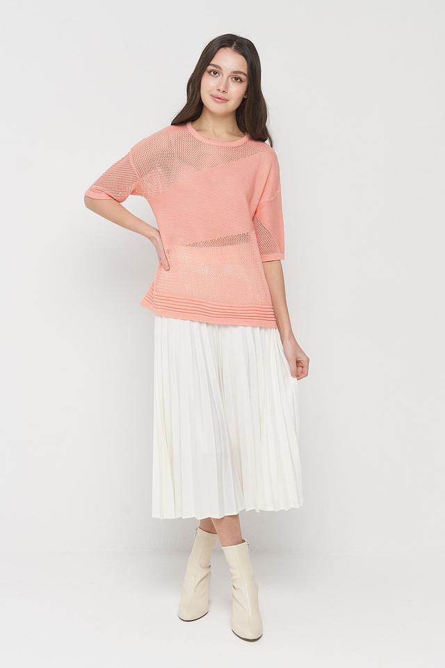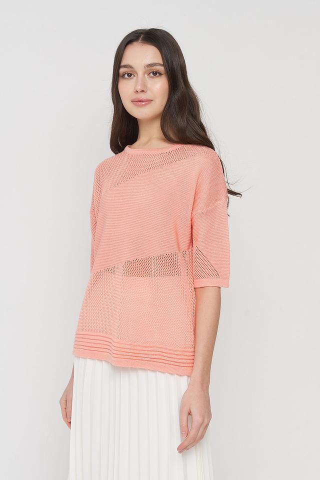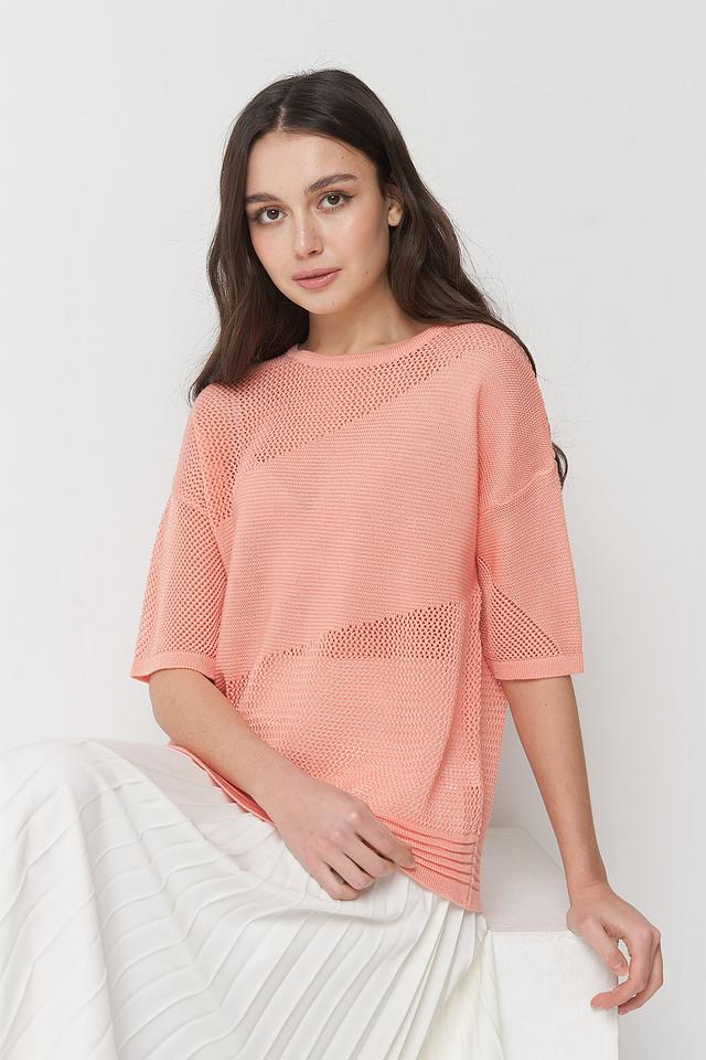 Этот стильный джемпер от VAY станет прекрасным выбором для создания легких и воздушных образов. Модель выполнена в нежном персиковом цвете и отличается ажурным узором, который придает ей особую изысканность.