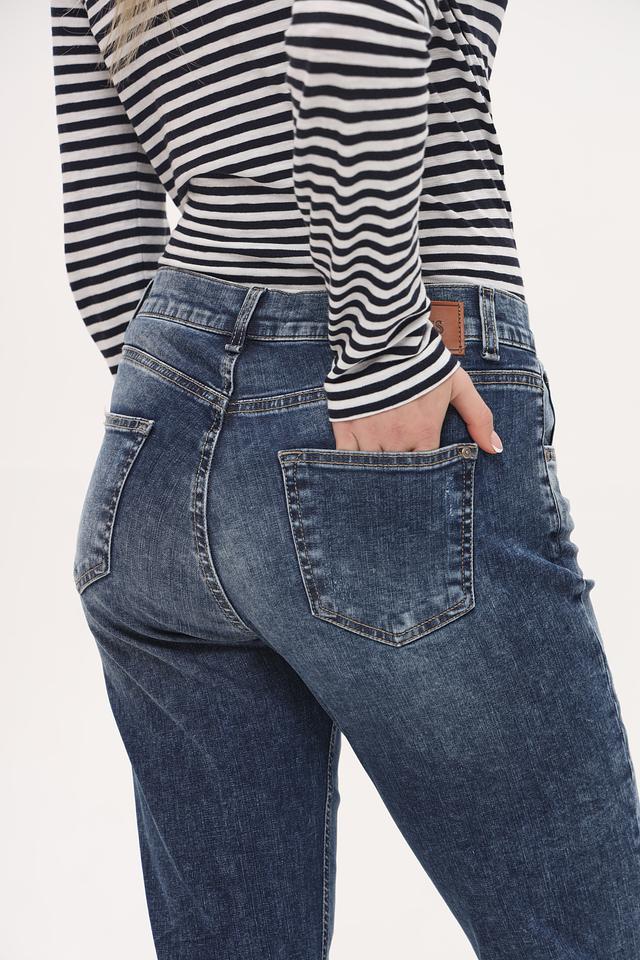 Синие джинсы Angels в стиле boyfriend из хлопка с добавлением полиэстера и эластана. Модель с эффектом потертости и декоративными элементами. Обеспечивают комфорт и свободу движений. Состав: хлопок 92%, полиэстер 6%, эластан 2%