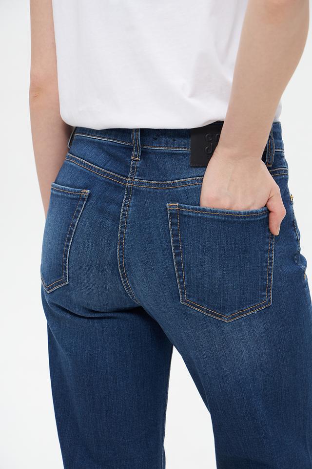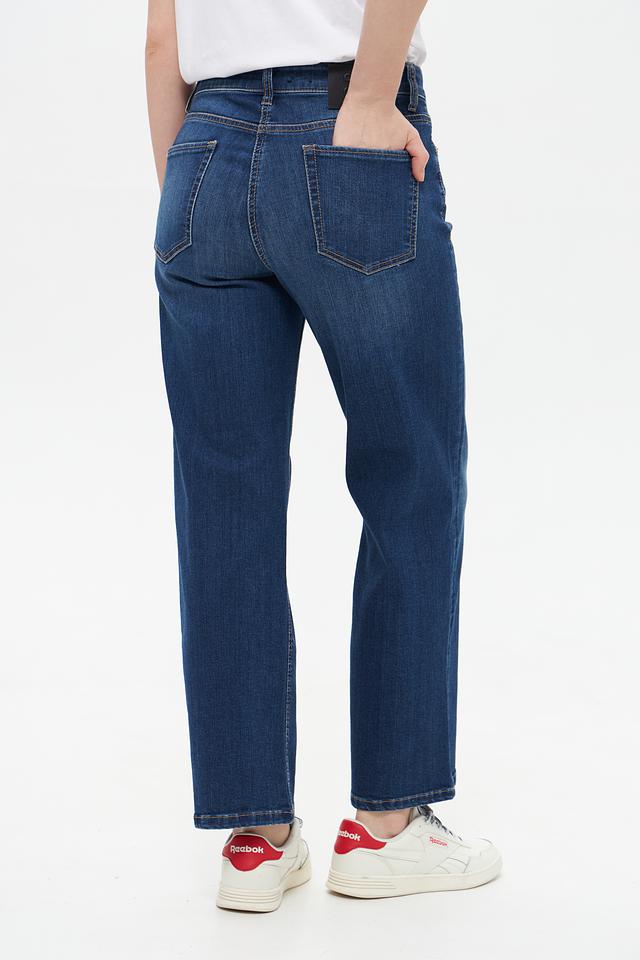 Джинсы имеют завышенную талию, которая подчеркивает фигуру и обеспечивает комфортную посадку. Прямой крой создает элегантный силуэт и подходит для любого типа телосложения. Ткань состоит из 92% хлопка, 6% эластомультиэстера и 2% эластана, что обеспечивает мягкость, эластичность и долговечность изделия.