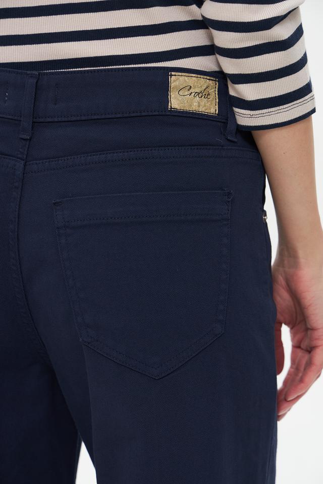 Женские джинсы Croche тёмно-синего цвета, выполнены в стиле клеш с высокой посадкой. Модель отличается лаконичным дизайном и комфортной посадкой благодаря составу с добавлением эластана. Состав: хлопок 97%, эластан 3%