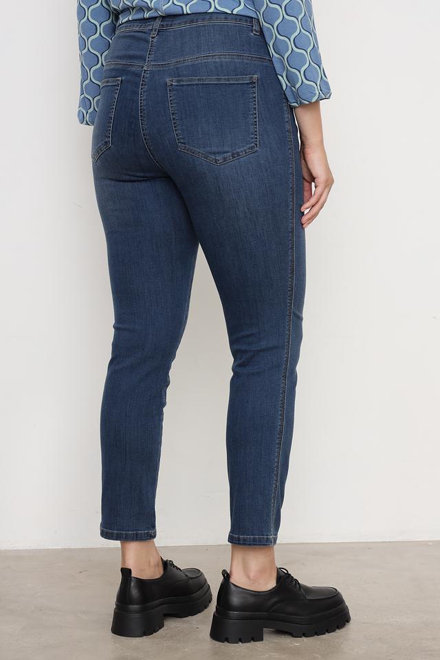 Джинсы имеют узкий крой, который подчеркивает фигуру и обеспечивает комфортную посадку. Высокая посадка визуально удлиняет ноги и делает силуэт более стройным. Застёжка на молнию и пуговицу обеспечивает надежную фиксацию.