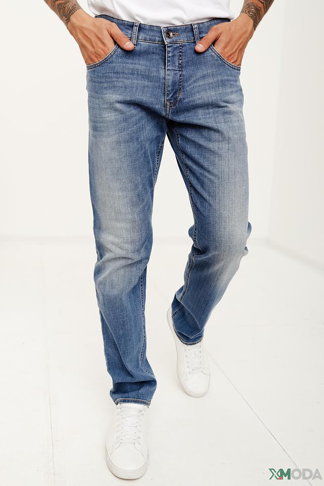 Мужские джинсы Gardeur синего цвета с эффектом потертостей и классическим кроем. Модель выполнена из качественного хлопка с добавлением эластана для комфорта и свободы движений. Состав: хлопок 98%, эластан 2%