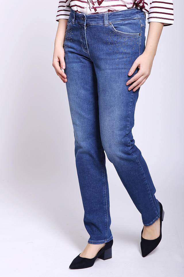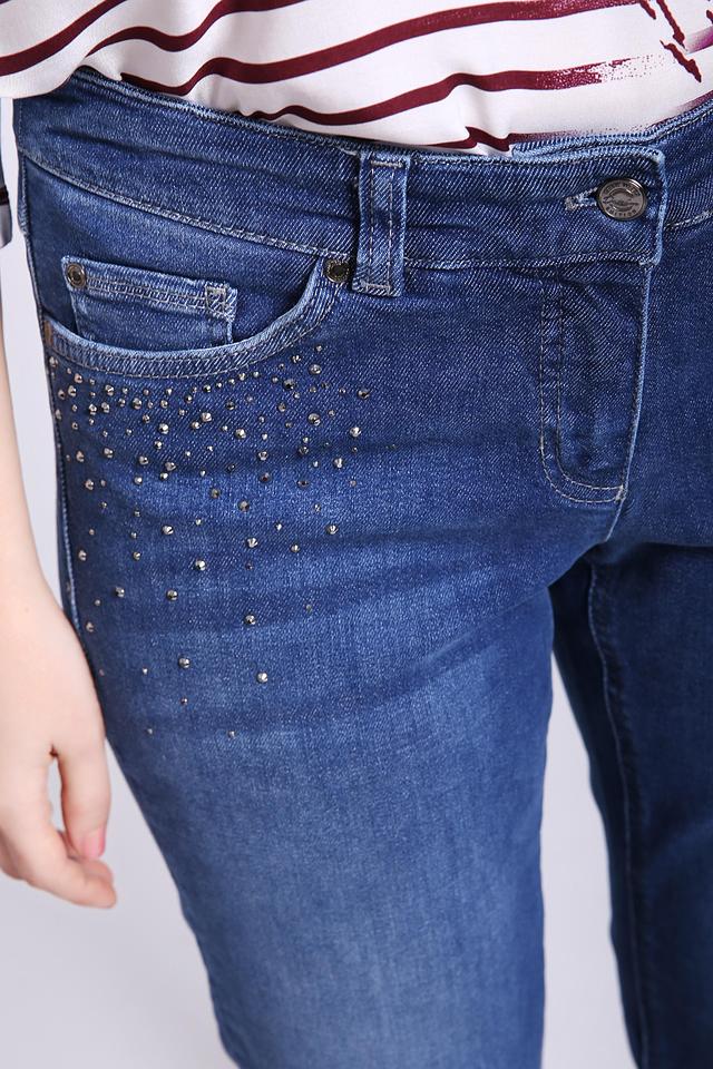 Женские джинсы Gerry Weber синего цвета, прямого кроя, с отделкой стразами на карманах. Модель выполнена из качественного хлопка с добавлением эластана для комфортной посадки. Состав: хлопок 93%, полиэстер 4%, эластан 3%