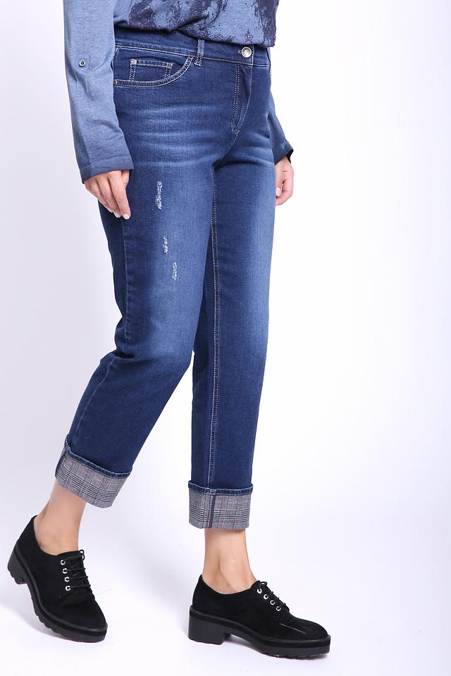 Джинсы Gerry Weber синего цвета – это стильная модель с эффектом потертостей и оригинальным декором в клетку на манжетах. Удобный крой и качественный состав обеспечивают комфорт в носке. Состав: хлопок 99%, эластан 1%