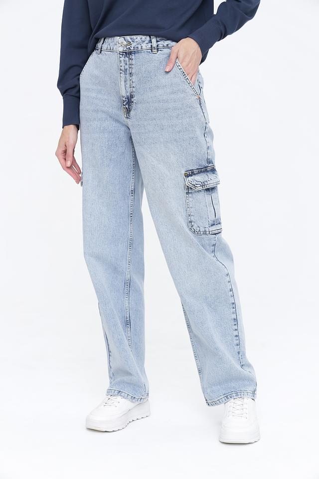 Джинсы имеют прямой крой, который обеспечивает комфортную посадку. Наличие накладных карманов по бокам добавляет функциональности и подчеркивает стиль карго. Застежка на молнию и пуговицу.