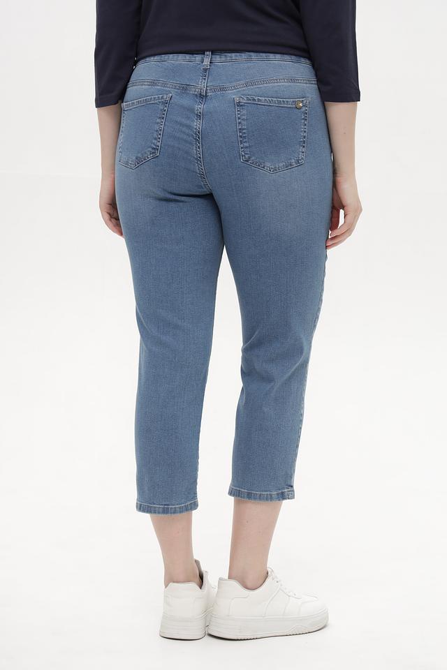 Джинсы имеют классическую пятикарманную конструкцию, пояс с шлевками для ремня и застежку на молнию и пуговицу. Отличительной особенностью модели является укороченная длина 7/8, которая идеально подходит для создания модных и стильных образов.