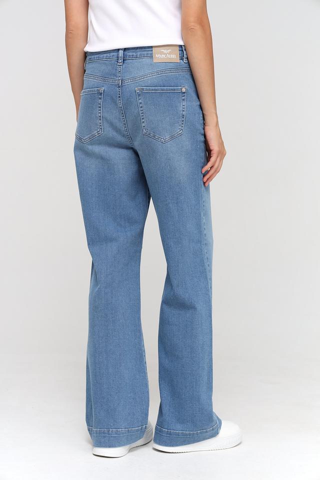 Голубые джинсы клеш от Marc Aurel – стильное и комфортное решение для повседневного образа. Классический деним, высокая посадка и свободный крой обеспечивают удобную посадку и актуальный силуэт. Состав: хлопок 93%, полиэстер 5%, эластан 2%