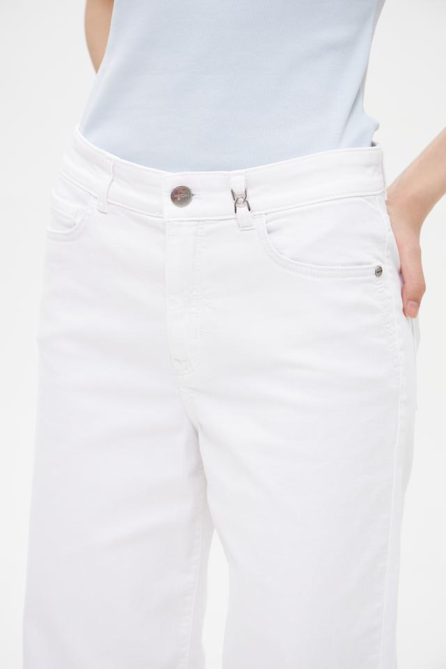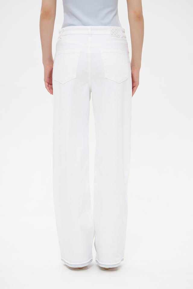 Белые широкие джинсы от Marc Cain, выполненные из переработанного хлопка с добавлением эластана. Модель отличается свободным кроем и заниженной линией талии. Состав: переработ.хлопок 70%, хлопок 20%, эластомультиэстер 8%, эластан 2%
