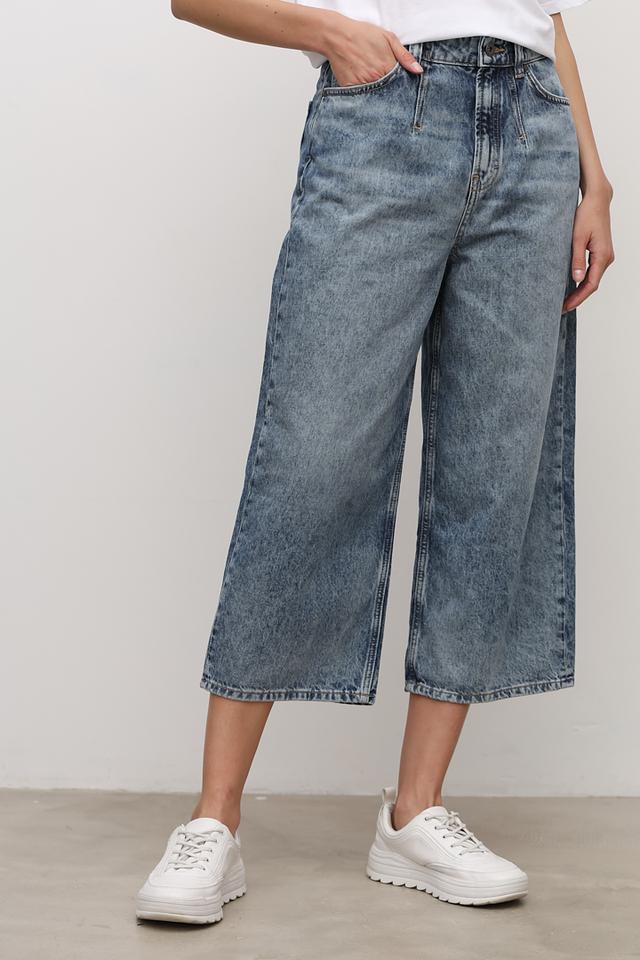 Крой кюлотов обеспечивает свободу движений и комфорт при носке. Джинсы имеют классическую посадку на талии, пояс дополнен шлевками для ремня. Пять карманов – два спереди, два сзади и один небольшой карман для мелочи.
