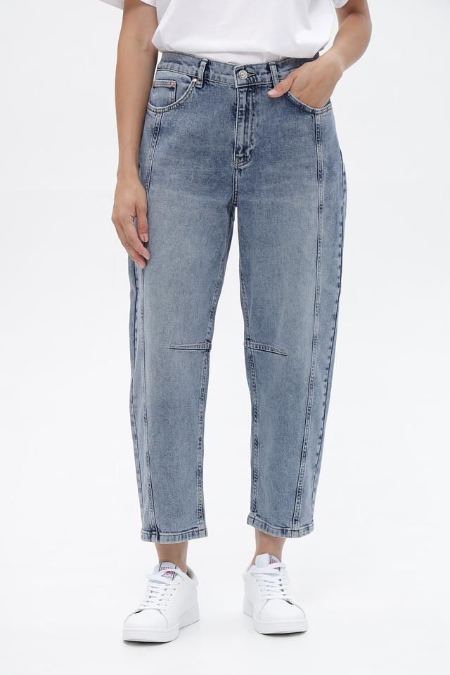 Женские джинсы Oui голубого цвета с широким кроем и декоративными швами. Модель выполнена из хлопка с добавлением эластана для комфорта и свободы движений. Отличаются стильным дизайном и удобной посадкой. Состав: хлопок 99%, эластан 1%