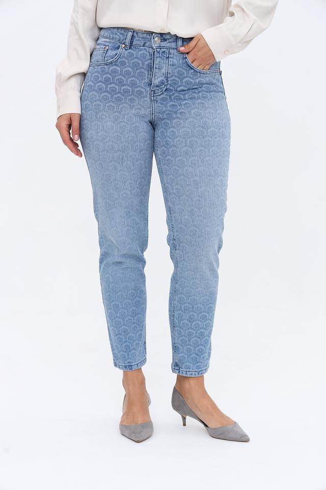 Женские джинсы Oui светло-голубого цвета с оригинальным цветочным узором. Модель выполнена из качественного хлопка с добавлением эластана для комфортной посадки и свободы движений. Состав: хлопок 99%, эластан 1%