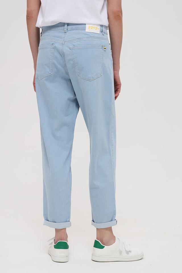 Женские джинсы Ppep. голубого цвета в стиле relaxed fit — удобная и стильная модель с высокой посадкой и широкими штанинами. Джинсы выполнены из хлопка с добавлением полибутилентерефталата и эластана. Состав: хлопок 89%, полибутилентерефталат 8%, эластан 3%