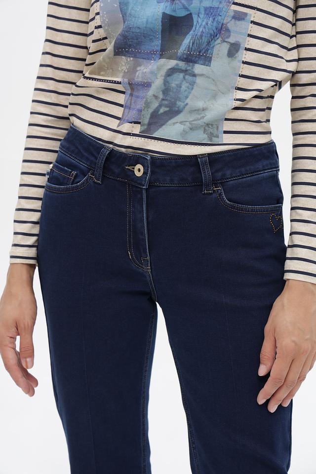 Джинсы изготовлены из сочетания хлопка (64%), вискозы (11%), полиэстера (23%) и эластана (2%). Хлопок обеспечивает комфорт и воздухопроницаемость, вискоза придает мягкость и приятные тактильные ощущения, полиэстер – износостойкость, а эластан – эластичность и свободу движений. Декоративная стежка бежевого цвета добавляет изделию оригинальности.