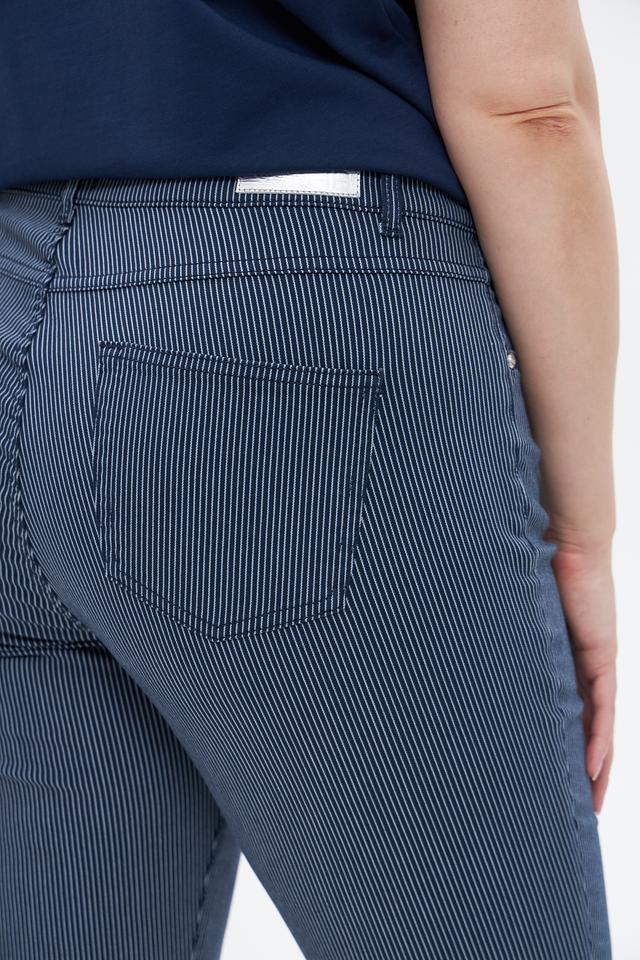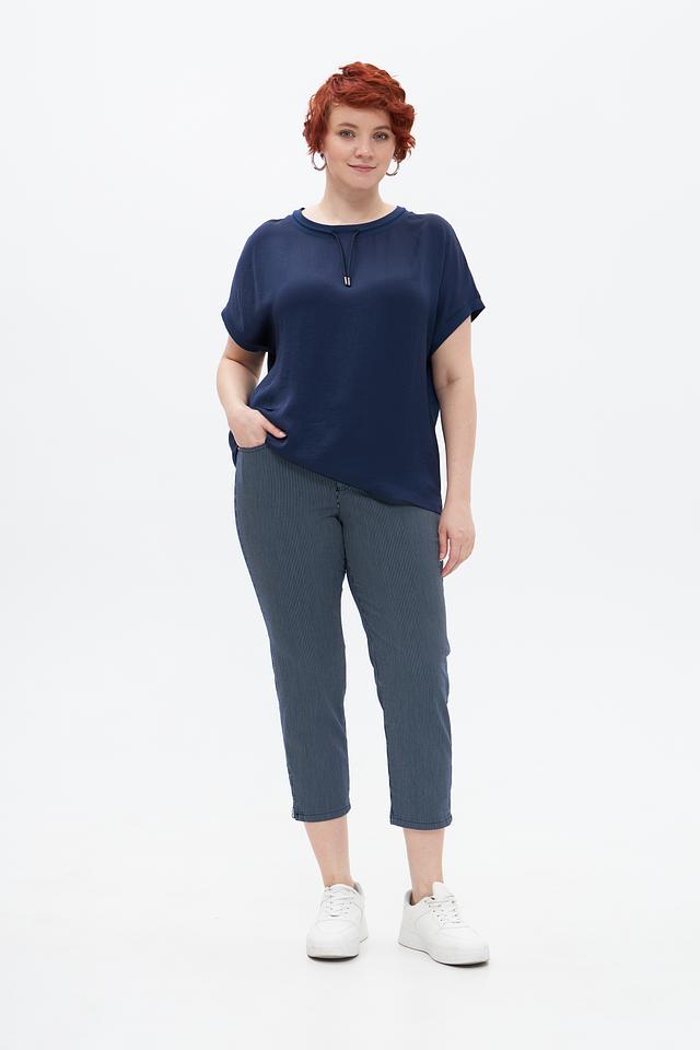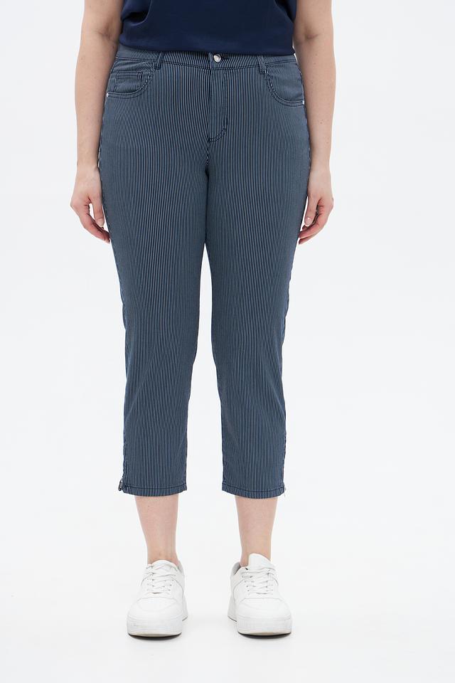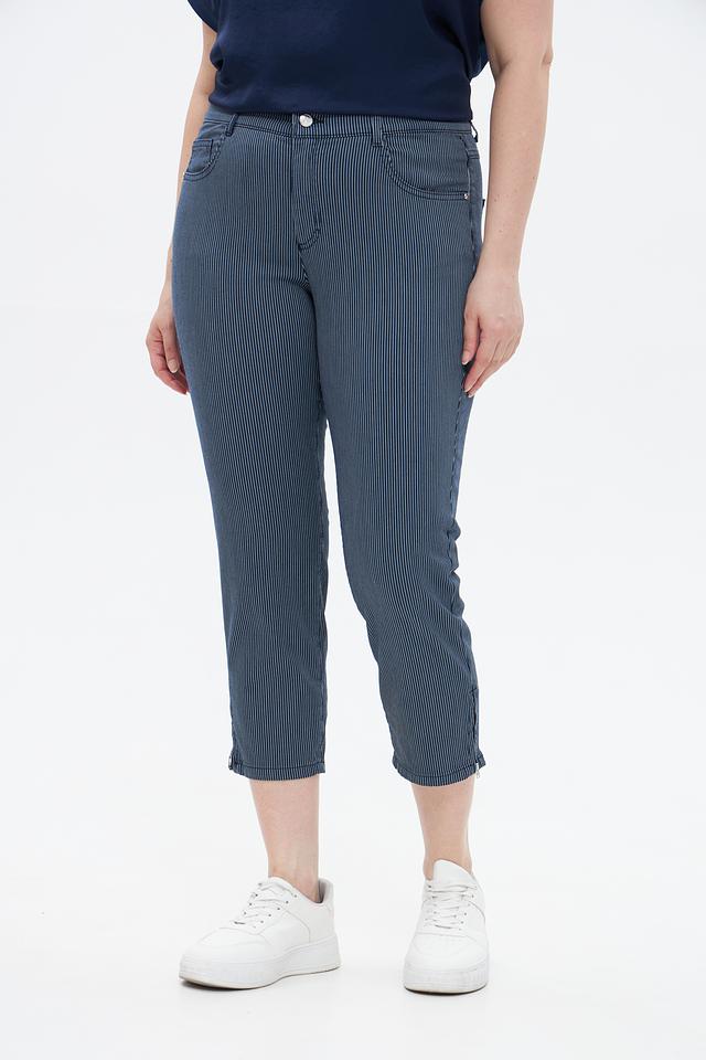 Женские джинсы Rabe collection синего цвета с вертикальной полоской — удобная и стильная модель укороченного кроя. Изготовлены из хлопка с добавлением полиэстера и эластана для комфорта и износостойкости. Состав: хлопок 74%, полиэстер 23%, эластан 3%