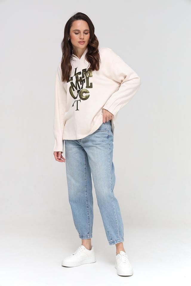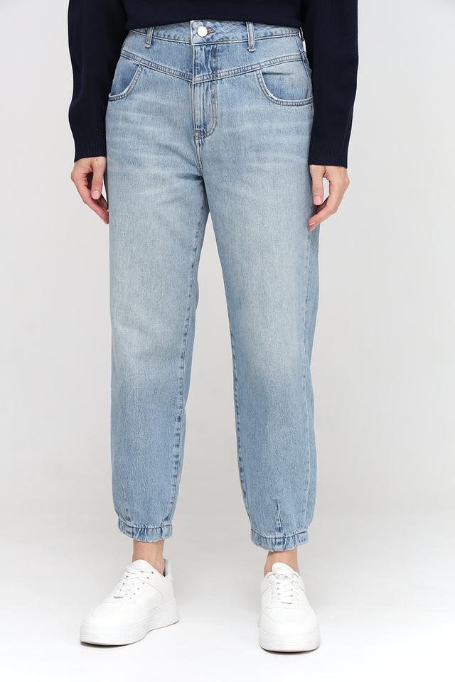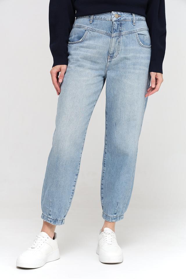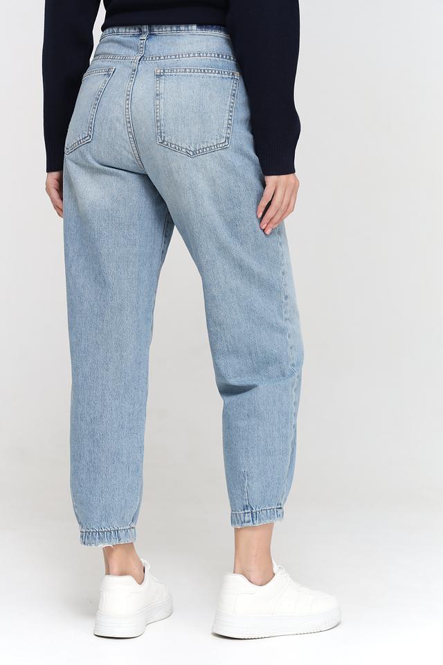 Женские джинсы Mom Fit от Rich and Royal голубого цвета, выполнены из 100% хлопка. Модель с завышенной талией и свободным кроем, оформлена манжетами внизу брюк. Состав: хлопок 100%