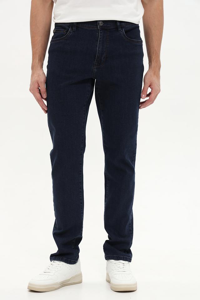 Джинсы выполнены в насыщенном синем цвете, который легко сочетается с различными элементами гардероба. Материал – плотный хлопок (92%) с добавлением полиэстера (6%) и эластана (2%), что обеспечивает комфорт при носке, хорошую износостойкость и небольшую эластичность.