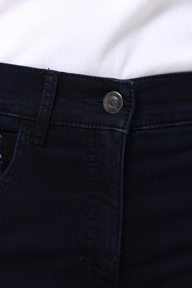 Декоративные элементы в виде вышивки на заднем кармане придают джинсам индивидуальность. Классическая застежка на молнию и пуговицу, а также пять карманов (два передних, два задних и один маленький карман для мелочи) делают эти джинсы практичными и функциональными. Состав: хлопок 65%, полиэстер 31%, эластан 4%.