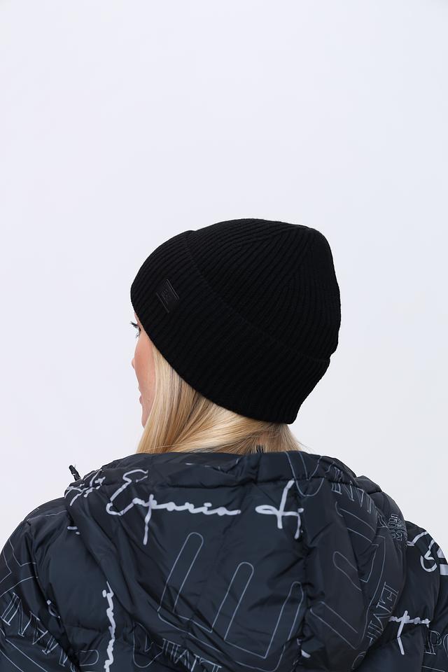 Шапка имеет классический дизайн и плотно прилегает к голове, защищая от ветра и мороза. Чёрный цвет делает её универсальной и легко сочетаемой с любой верхней одеждой.