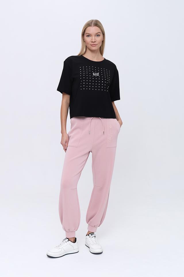Представляем женские спортивные брюки от бренда EA7. Эта модель выполнена в нежном пудрово-розовом цвете, который легко сочетается с различными элементами гардероба.