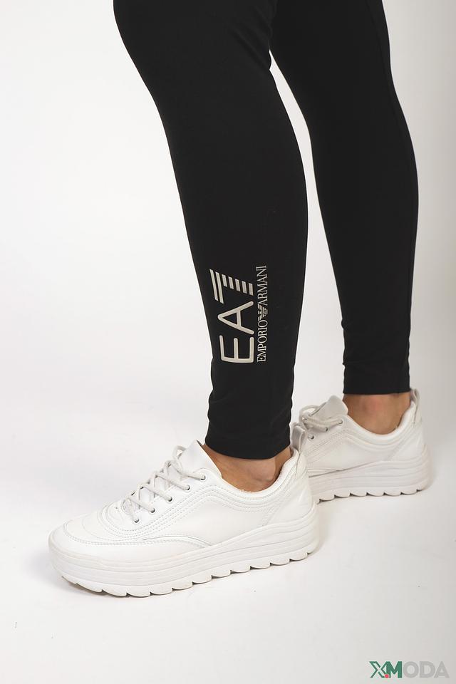 Дизайн брюк лаконичный и минималистичный. На левой штанине расположен логотип EA7, выполненный в контрастном белом цвете. Пояс брюк эластичный, обеспечивающий надежную фиксацию и комфорт при носке. Брюки имеют стандартную посадку и длину.