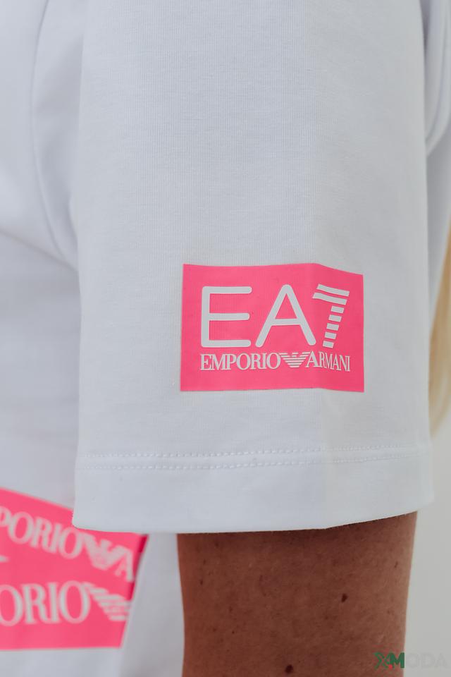 Модель имеет прямой крой и короткие рукава, что обеспечивает комфорт в жаркую погоду. Футболка украшена несколькими логотипами EA7 в розовом цвете, которые придают ей узнаваемый и современный вид.