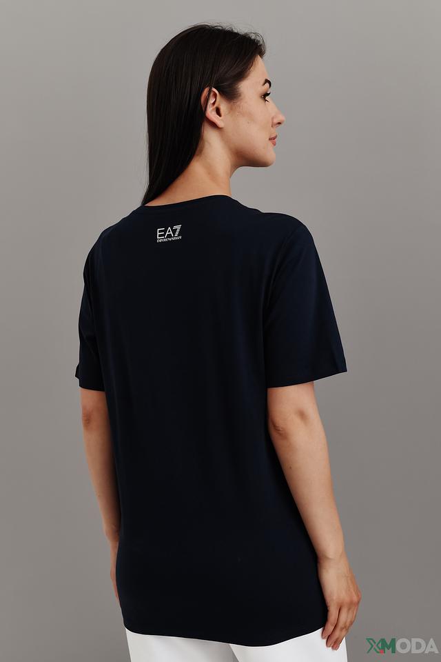 Футболка EA7 женская с логотипами, темно-синяя