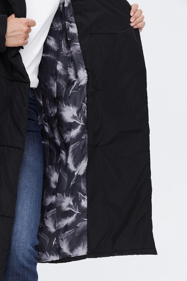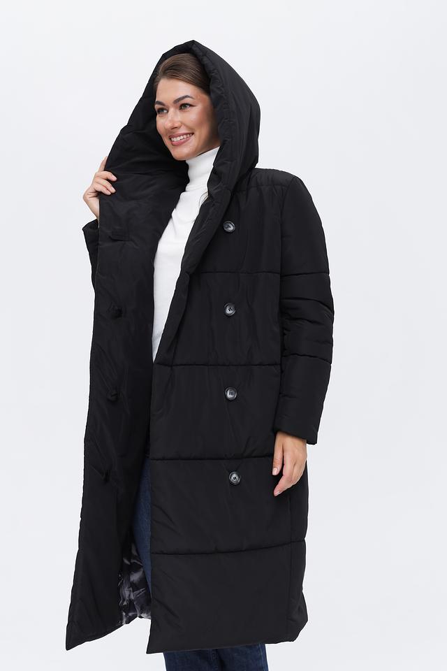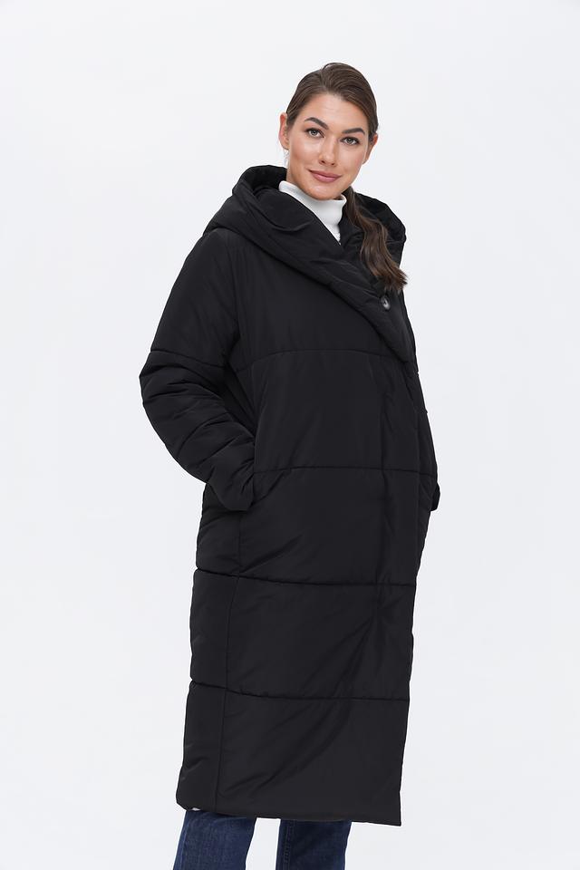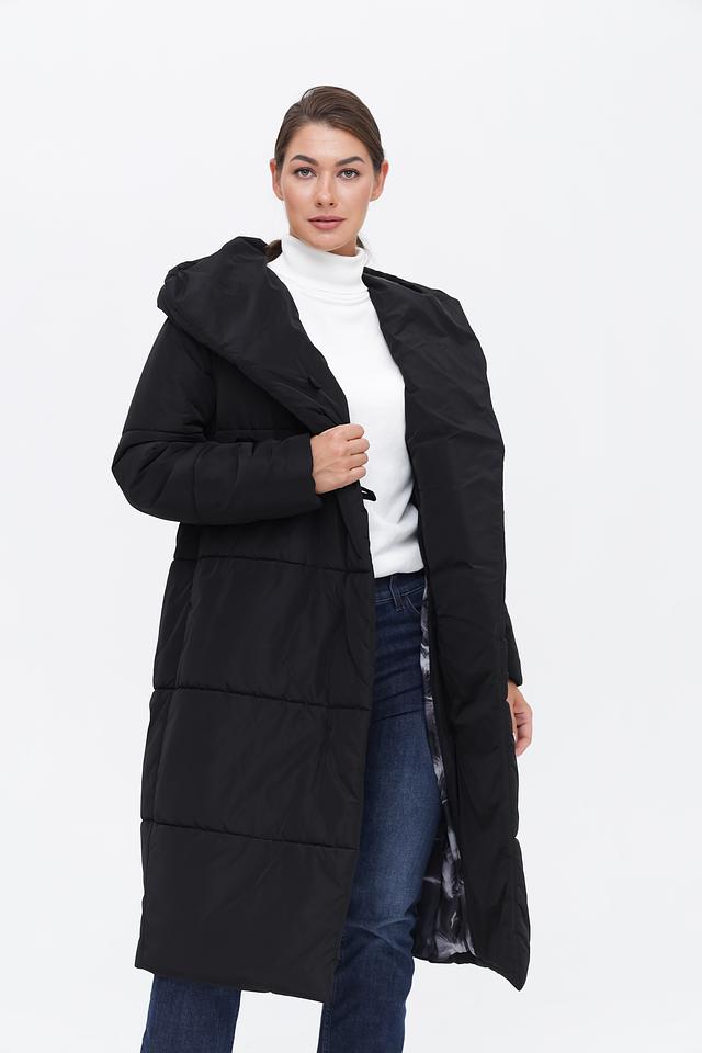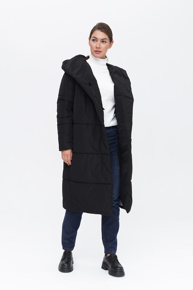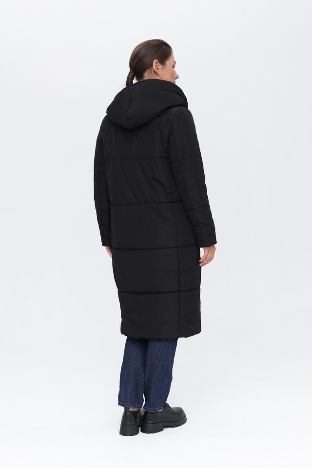 Модель имеет прямой крой и длину миди, что делает её универсальной для различных образов. Стеганая текстура придает пальто современный вид и обеспечивает дополнительное утепление. Капюшон добавляет функциональности и защищает от непогоды.
