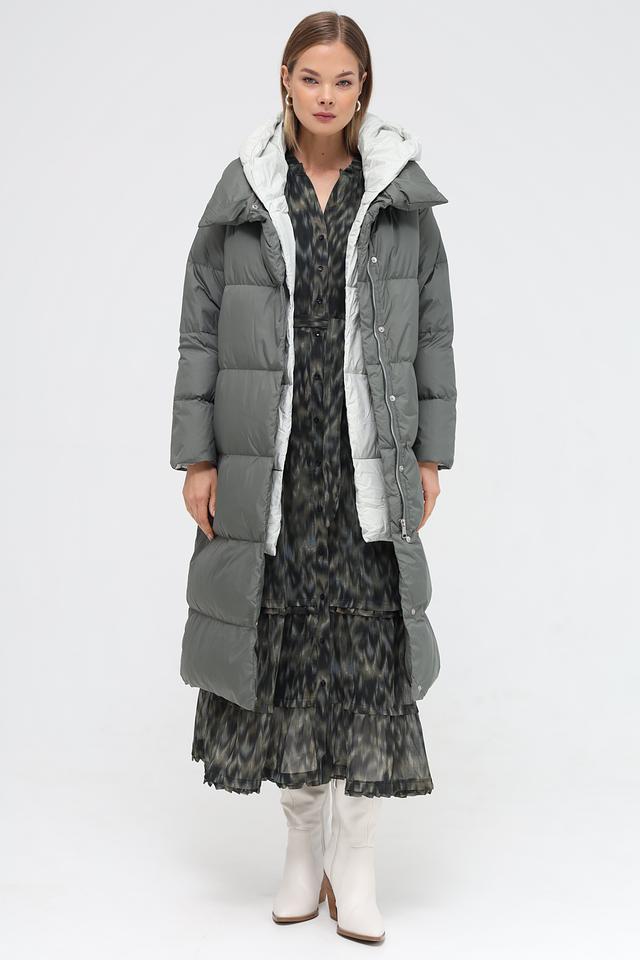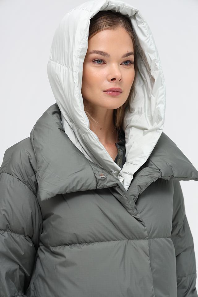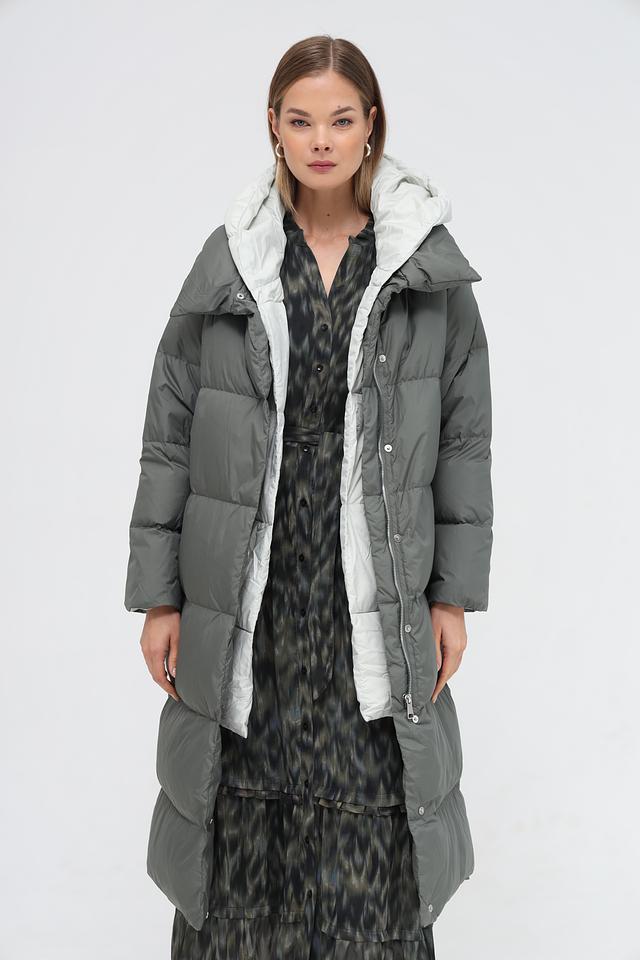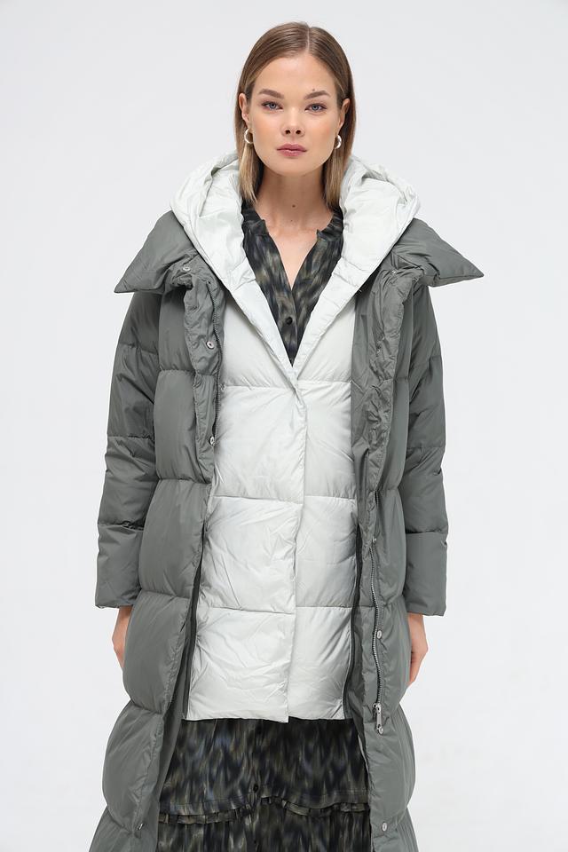 Женское пальто Electra style цвета хаки – это стильное и тёплое решение для прохладной погоды. Объёмный силуэт и капюшон обеспечивают комфорт и защиту от ветра, а стеганая фактура добавляет современный акцент. Состав: полиэстер 100%