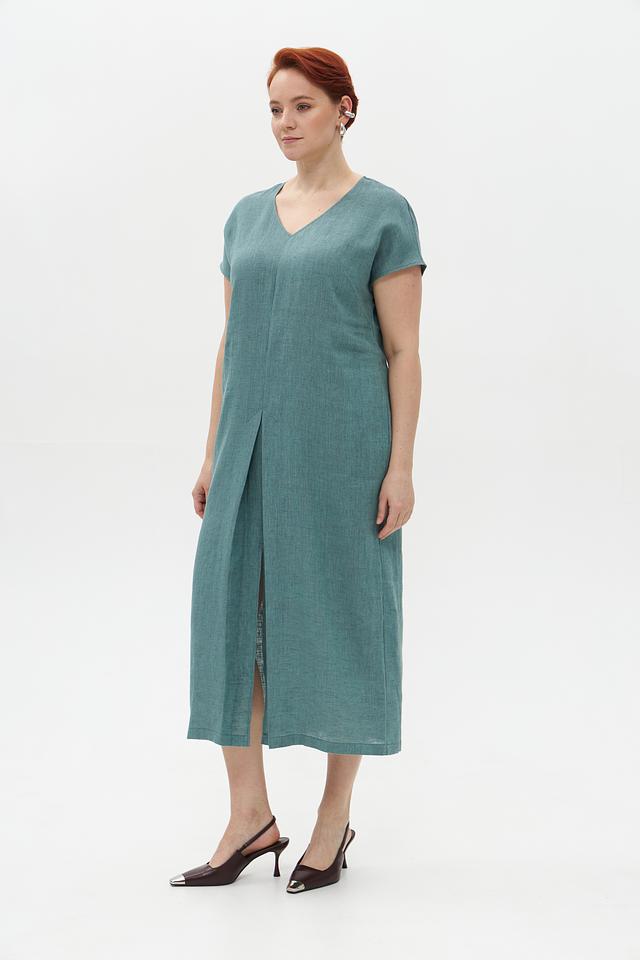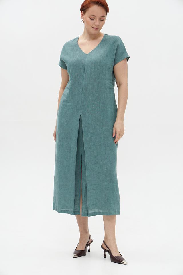 Льняное платье Electra style мятного цвета – это идеальный выбор для создания лёгкого и стильного образа. Платье имеет прямой крой, V-образный вырез и боковой разрез, что придает ему особую изящность и комфорт. Состав: лен 100%