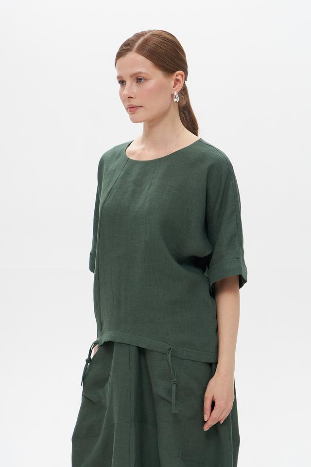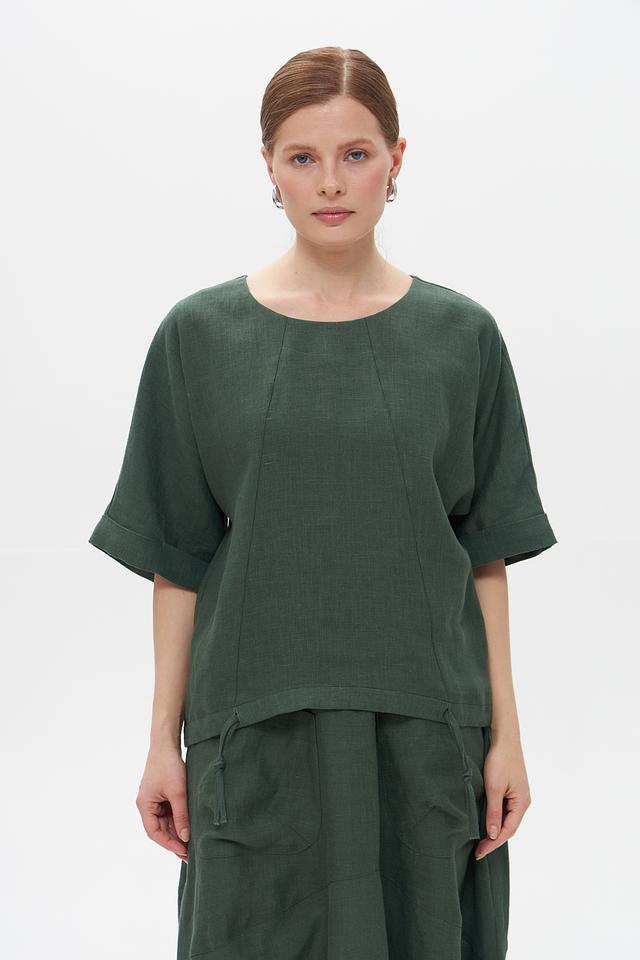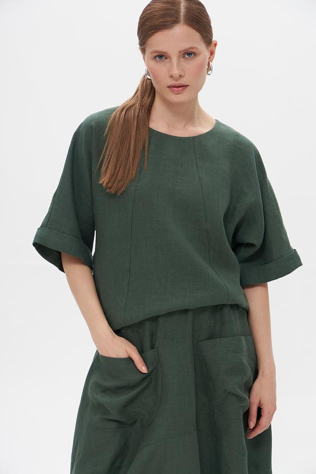 Зеленая блуза Electra style из 100% льна – это стильное и комфортное решение для создания повседневных образов. Свободный крой и короткие рукава обеспечивают удобство в жаркую погоду, а натуральный лен дарит ощущение прохлады и легкости. Состав: лен 100%