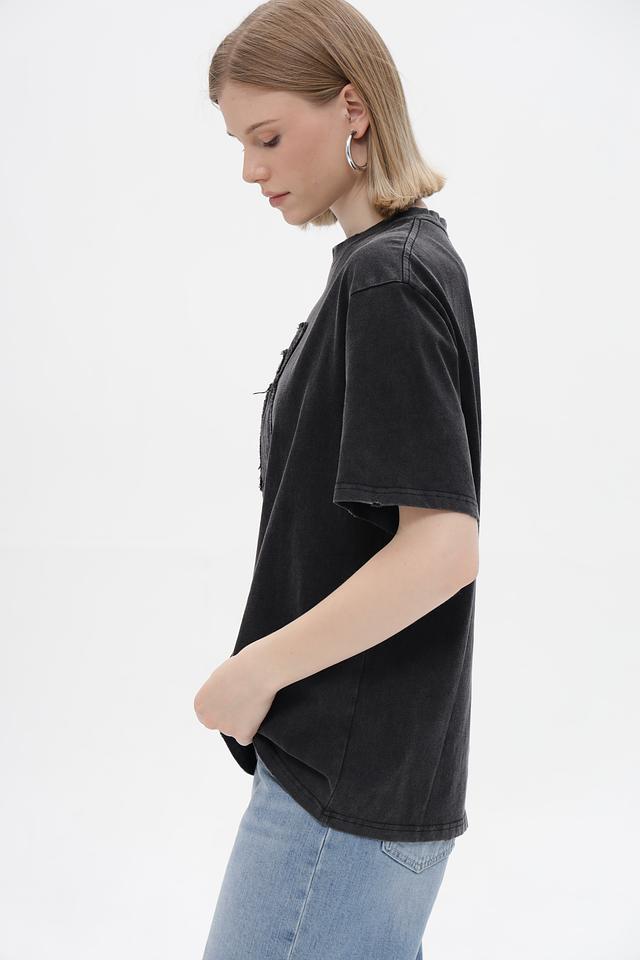 Эффект "вареной" ткани добавляет футболке винтажный вид и делает ее более интересной. Благодаря своему универсальному дизайну, эта футболка легко сочетается с различными элементами одежды, от джинсов и шорт до юбок и брюк. Идеальный выбор для повседневной носки.
