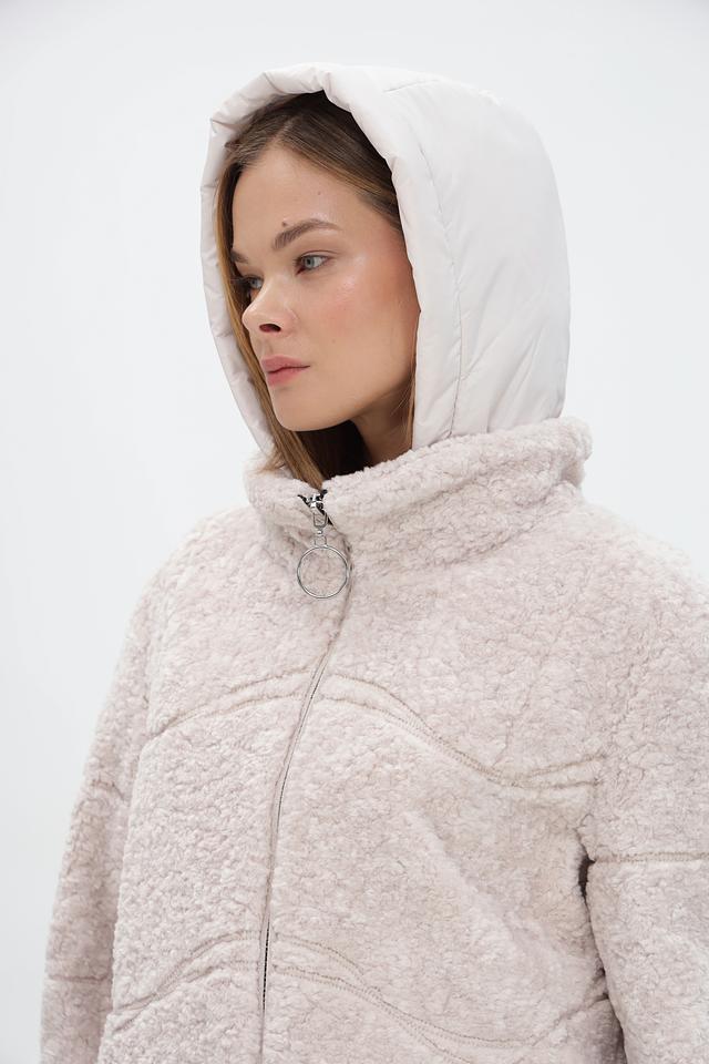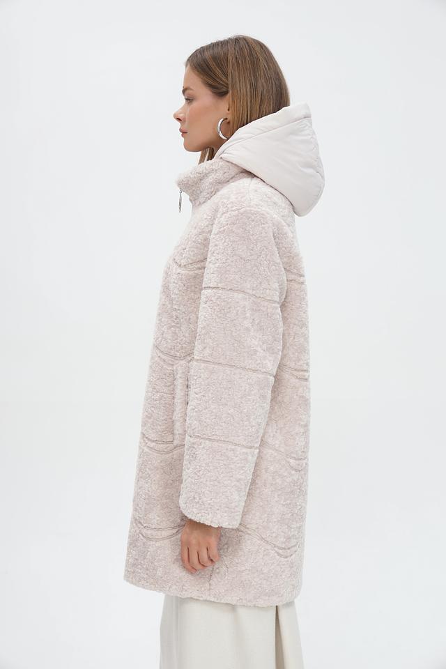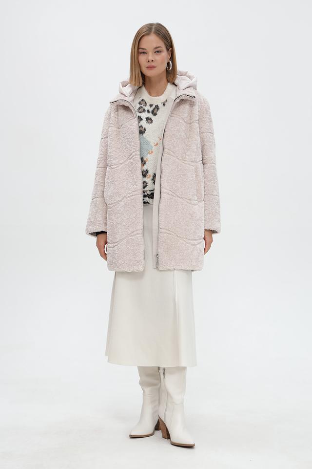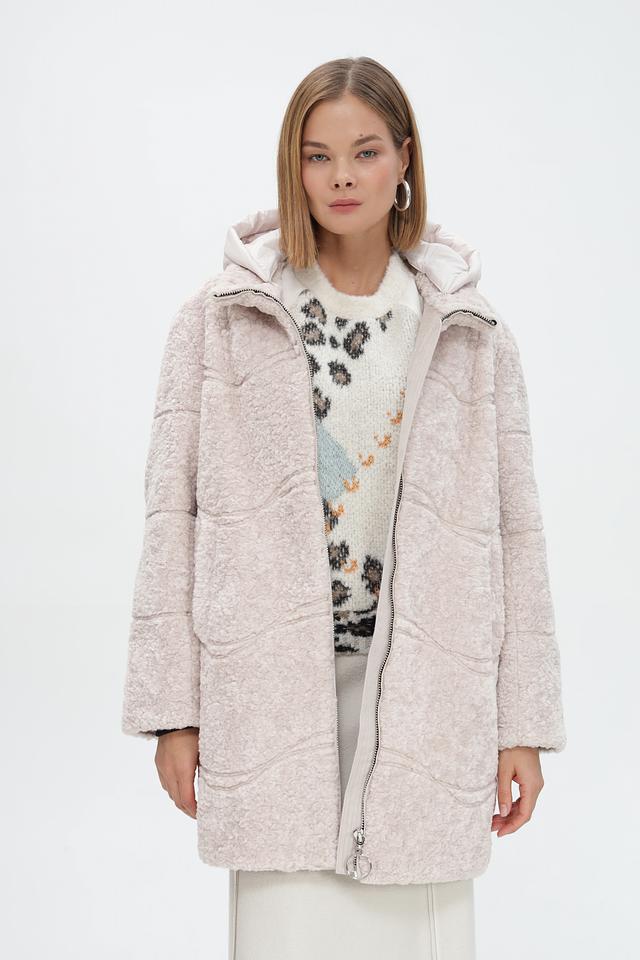 Пальто имеет удобный капюшон со стеганой вставкой, который защитит от ветра и непогоды. Застежка – молния по всей длине изделия. Фасон пальто прямой, длина – до середины колена.
