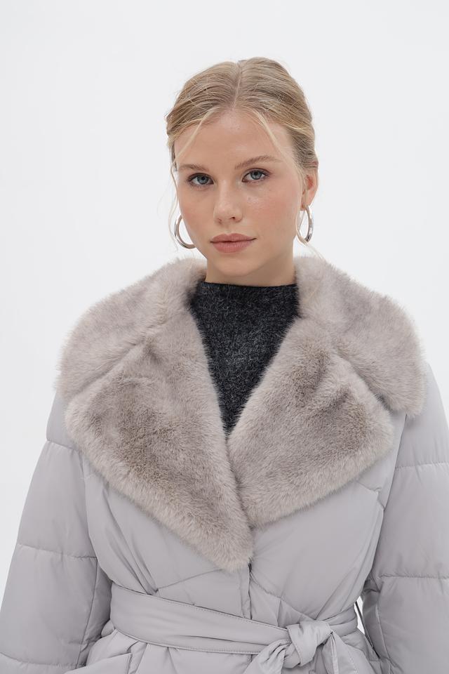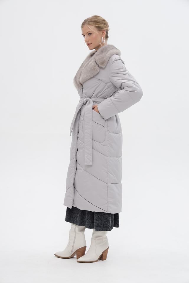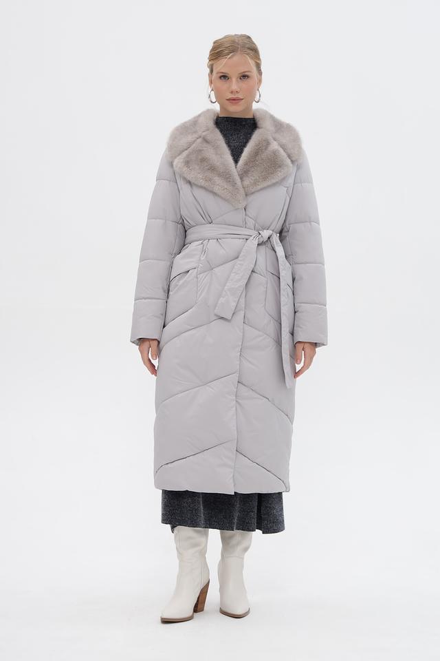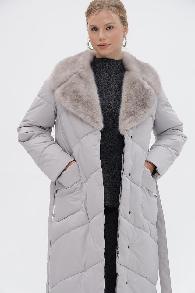 Стильное пальто Electra style серого цвета – это идеальный выбор для холодной погоды. Модель выполнена в стеганом стиле с меховым воротником и поясом, что придает ей элегантный и женственный вид. Состав: полиэстер 100%