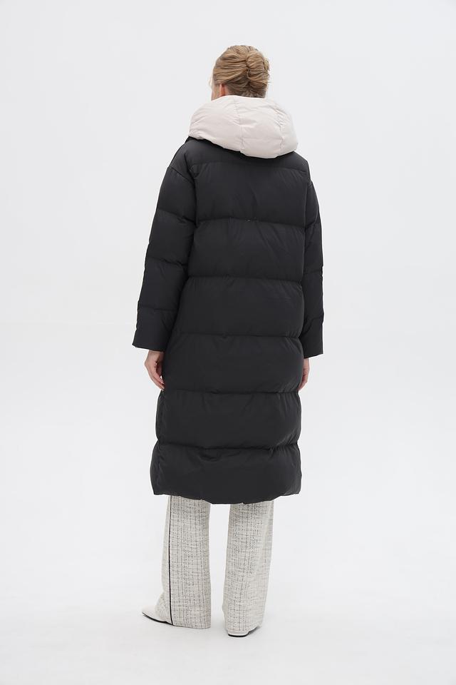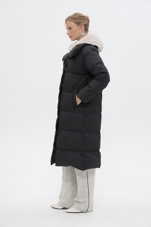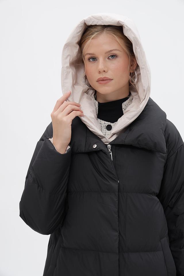 Пальто имеет объёмную стеганую текстуру, которая придает ему современный и стильный вид. Удобный капюшон защитит от ветра и снега, а застежка-молния позволит легко регулировать степень утепления.