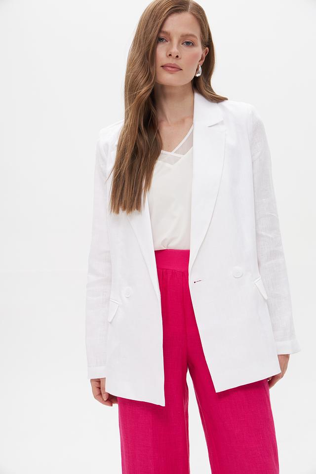 Белый льняной жакет от Electra style – стильное и комфортное решение для создания элегантного образа. Прямой крой и лаконичный дизайн делают его универсальным элементом гардероба. Жакет выполнен из 100% натурального льна. Состав: лен 100%