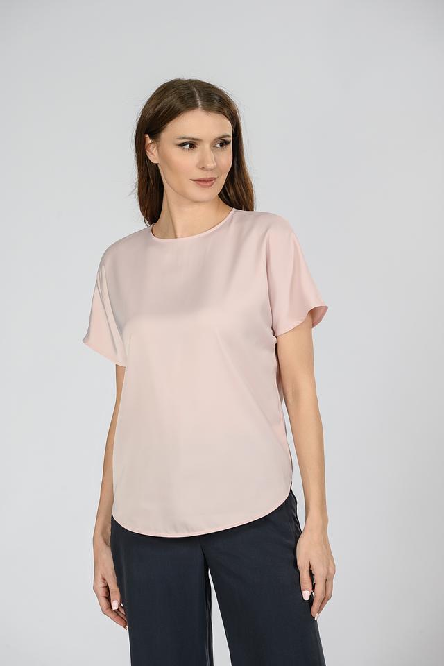 Розовая блуза Emka женского кроя выполнена из лёгкой ткани с короткими рукавами. Модель имеет круглый вырез горловины и небольшой разрез на спине, что придает ей изящность и женственность. Состав: полиэстер 80%, вискоза 20%