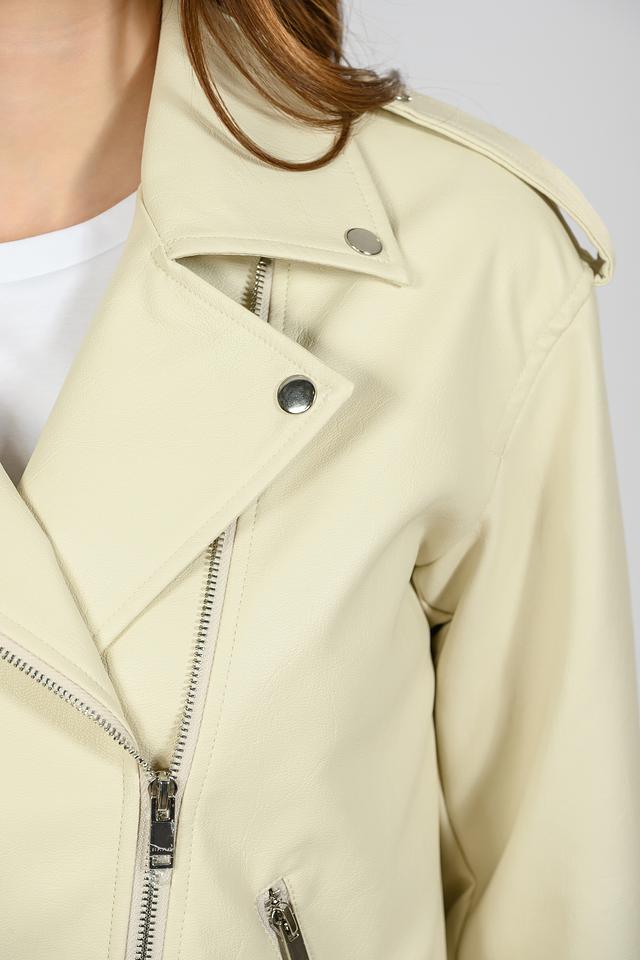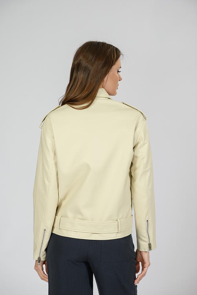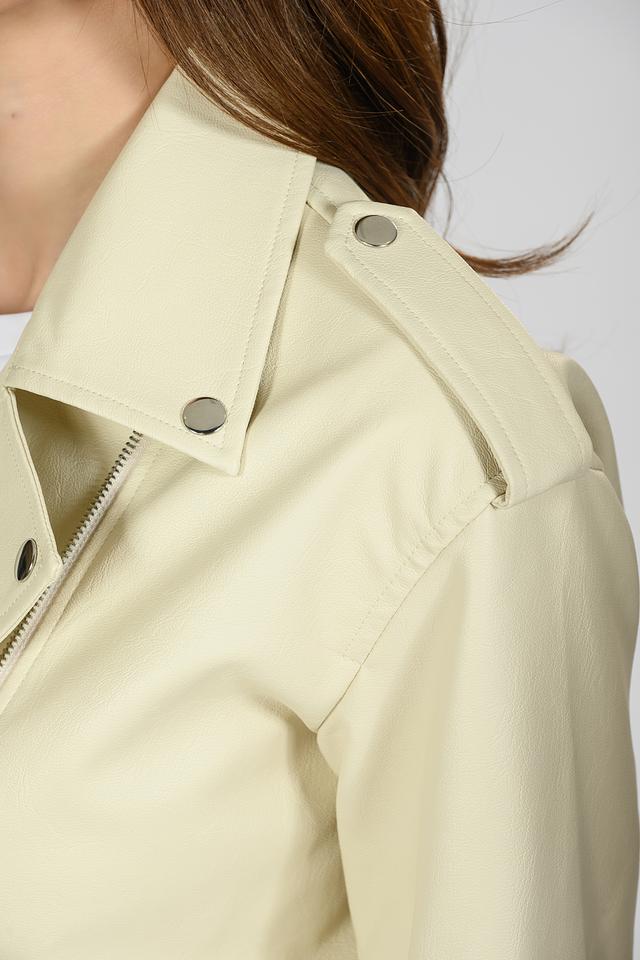 Эта куртка от Emka станет отличным дополнением к вашему гардеробу. Выполнена из высококачественного полиуретана молочного цвета, имитирующего кожу.