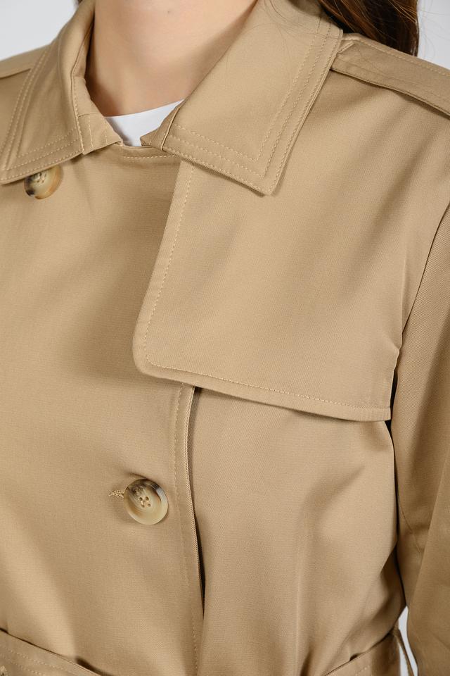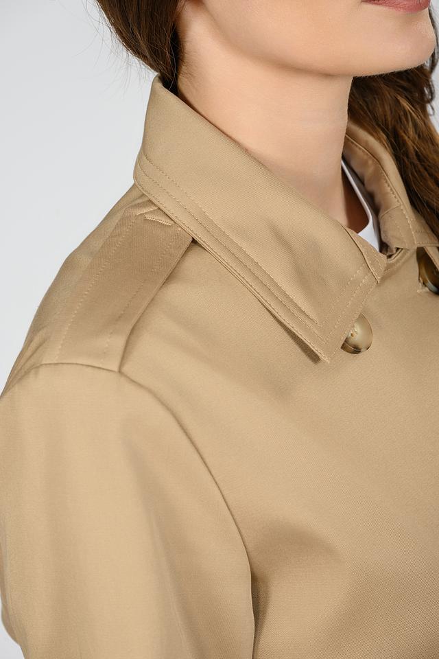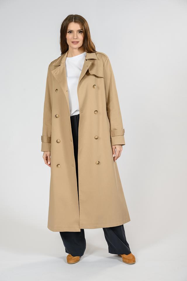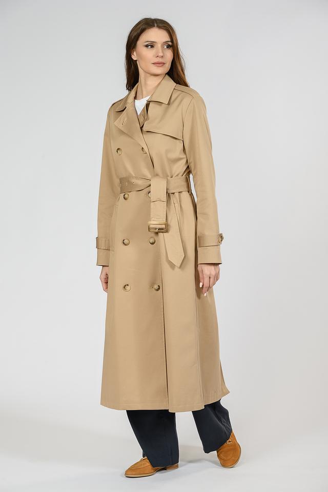Бежевый плащ от Emka – это классическая верхняя одежда, выполненная в лаконичном стиле. Модель имеет двубортную застёжку на пуговицы и пояс, что позволяет подчеркнуть силуэт. Плащ изготовлен из хлопка с добавлением эластана. Состав: хлопок 97%, эластан 3%