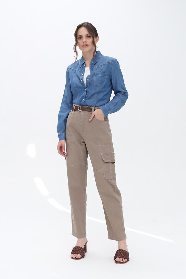 Джинсы имеют прямой крой, обеспечивающий свободу движений и комфортную посадку. Функциональные накладные карманы по бокам добавляют практичности и подчеркивают современный дизайн. Высокая посадка визуально удлиняет ноги и создает элегантный силуэт.