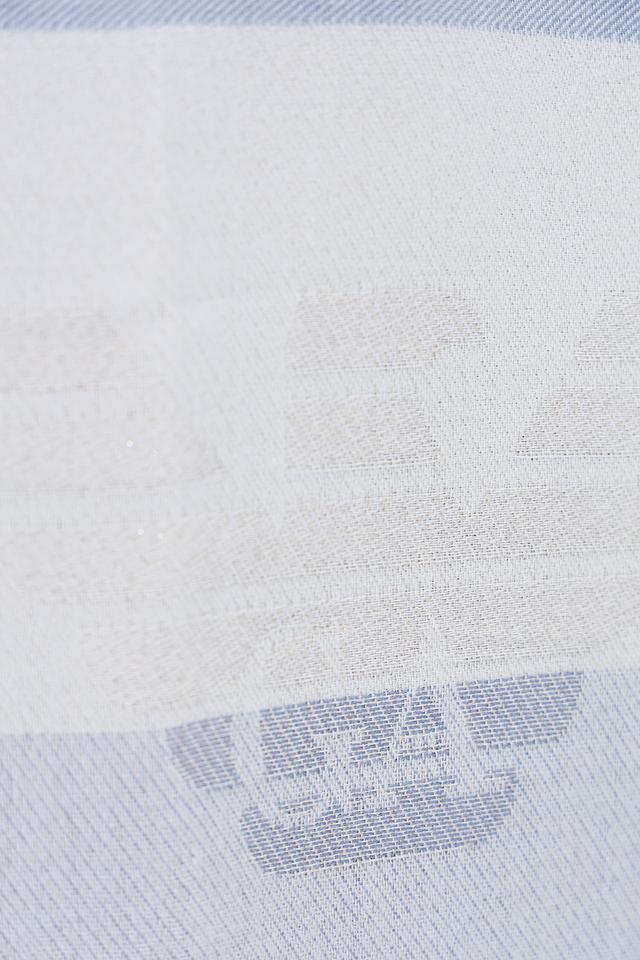 Голубой шарф от Emporio Armani с полосатым дизайном станет стильным дополнением к вашему образу. Изготовлен из сочетания полиэстера и вискозы, обеспечивая мягкость и комфорт. Шарф имеет бахрому по краям. Состав: полиэстер 86%, вискоза 14%