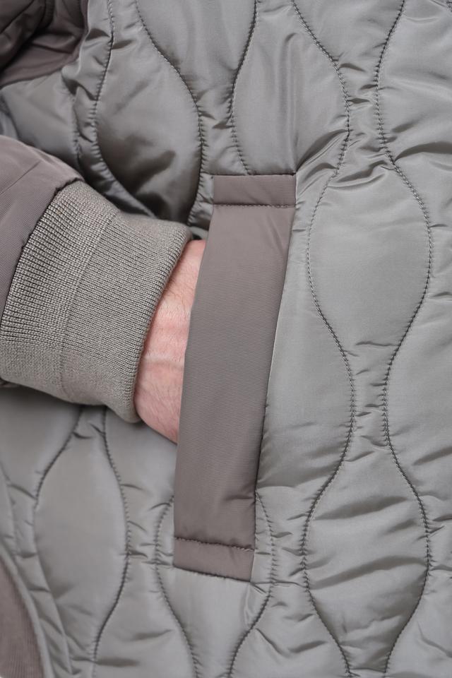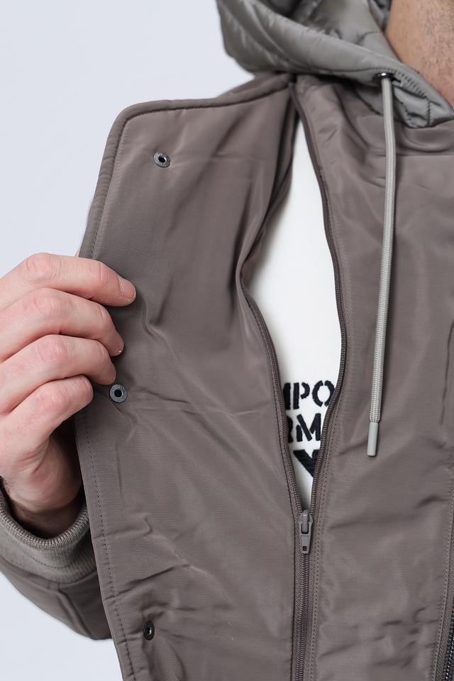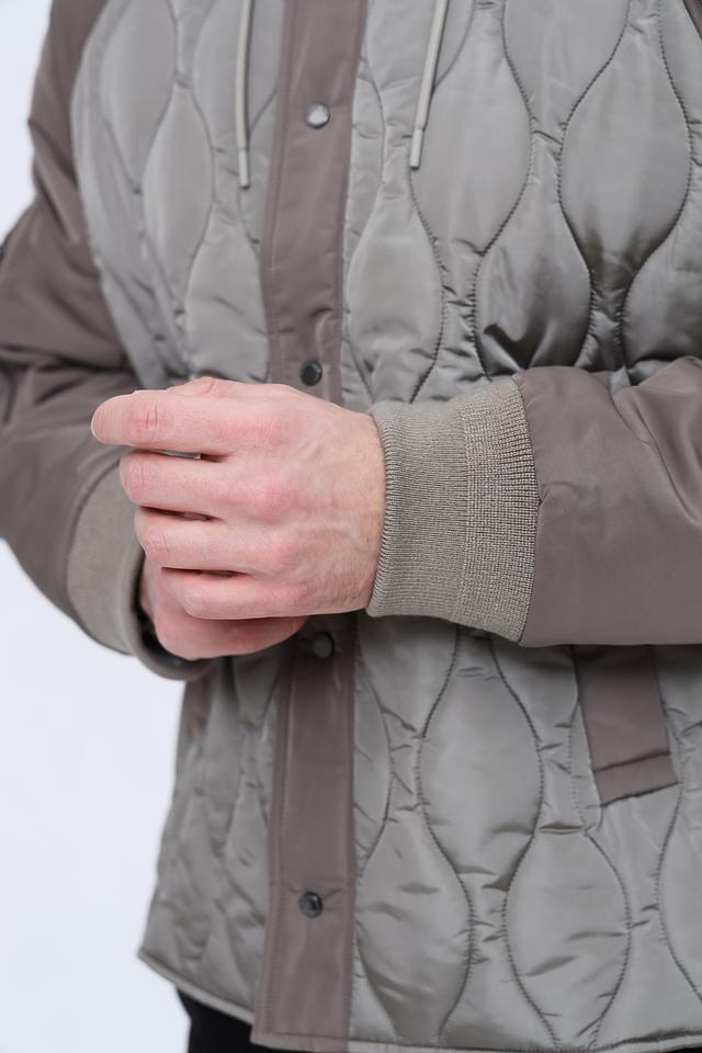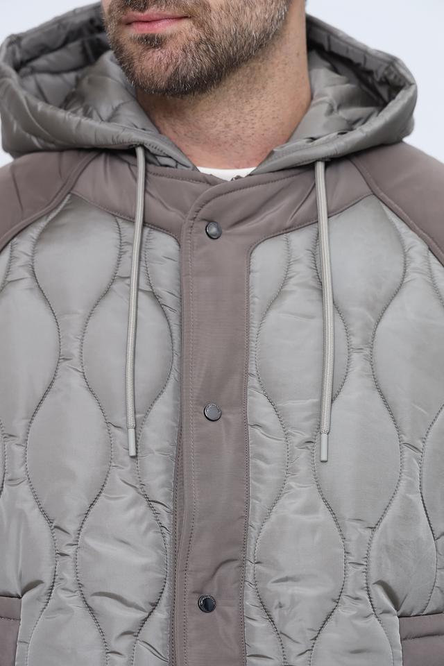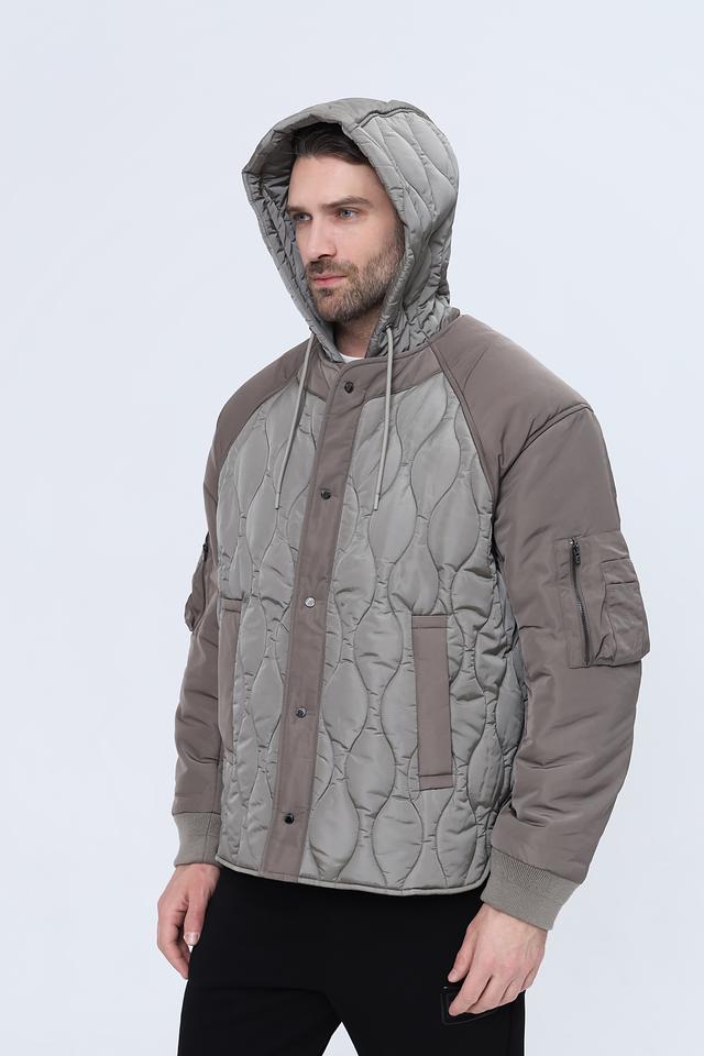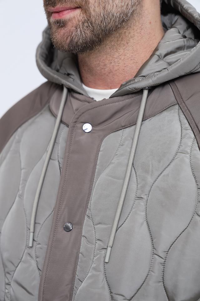 Стильная мужская куртка Emporio Armani серого цвета с комбинированным дизайном и стеганой фактурой. Модель с капюшоном и удобными карманами станет отличным дополнением к вашему гардеробу. Состав: полиамид 100%