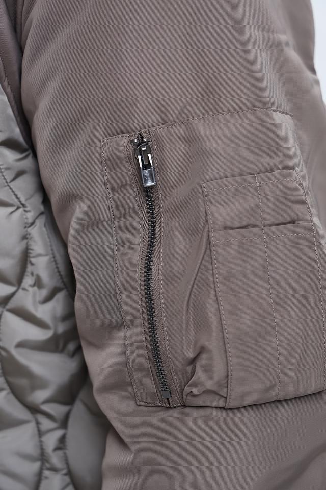 Мужская куртка от Emporio Armani выполнена в серой цветовой гамме и отличается современным дизайном. Модель имеет комбинированную фактуру: часть куртки выполнена из гладкой ткани, а часть – со стеганым узором.