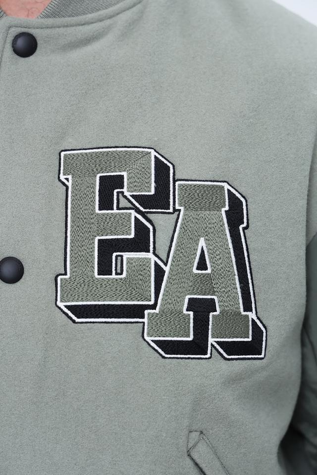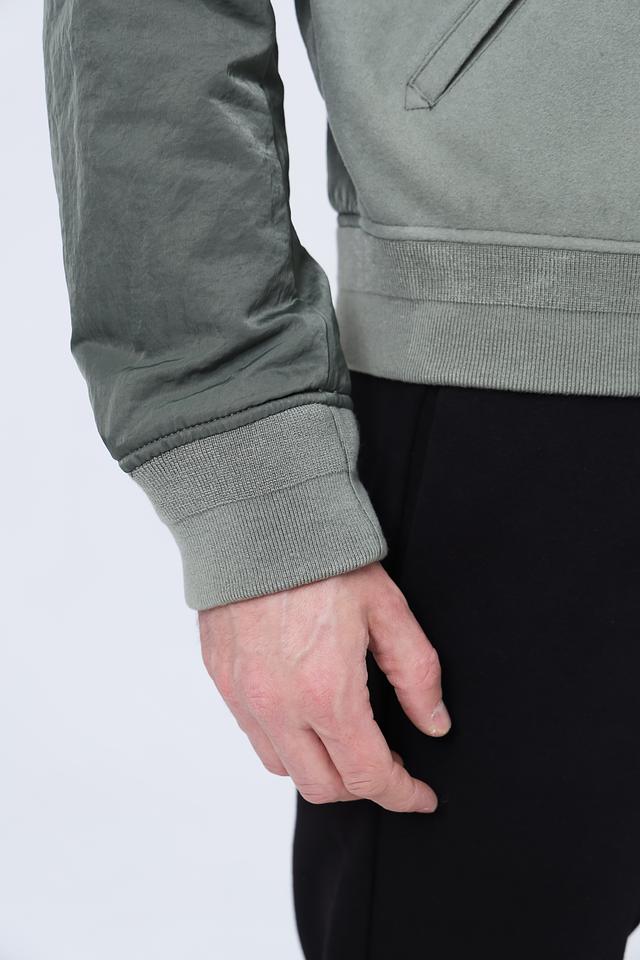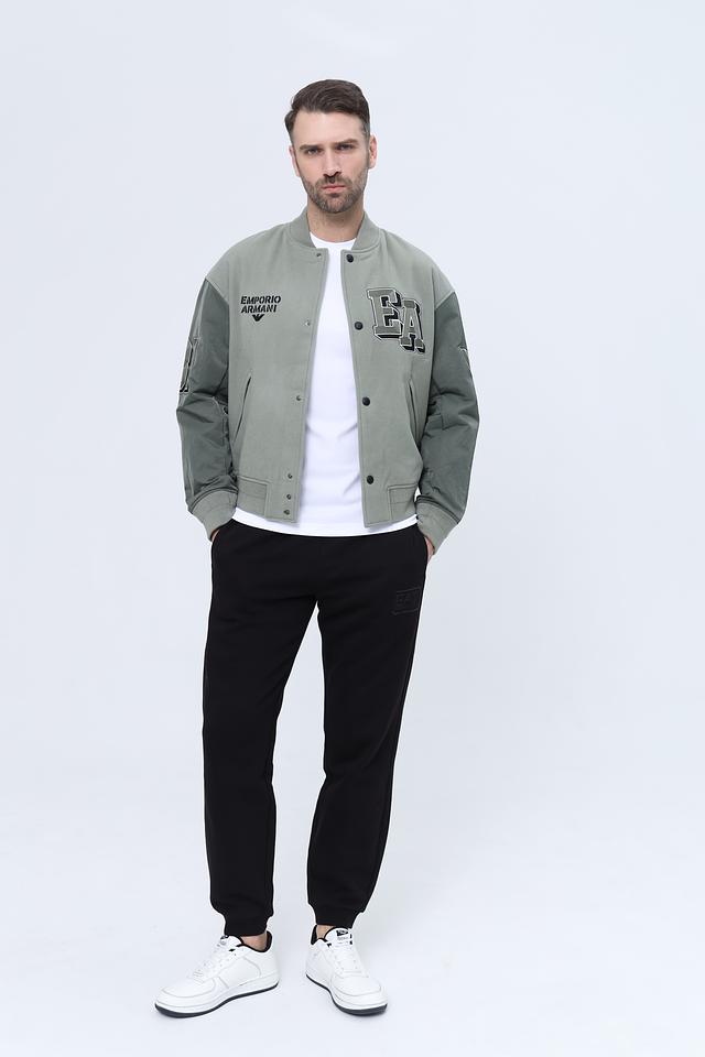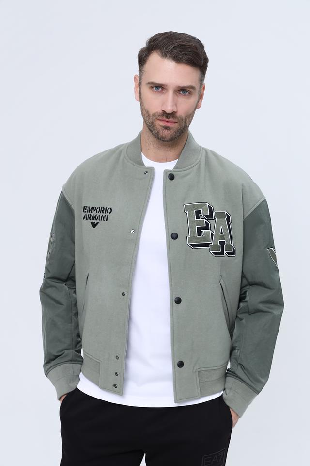 Мужская ветровка Emporio Armani хаки цвета с вышивкой логотипа и контрастными рукавами. Стильная модель в спортивном стиле, выполнена из смесовой ткани с добавлением шерсти. Состав: шерсть 80%, полиамид 19%