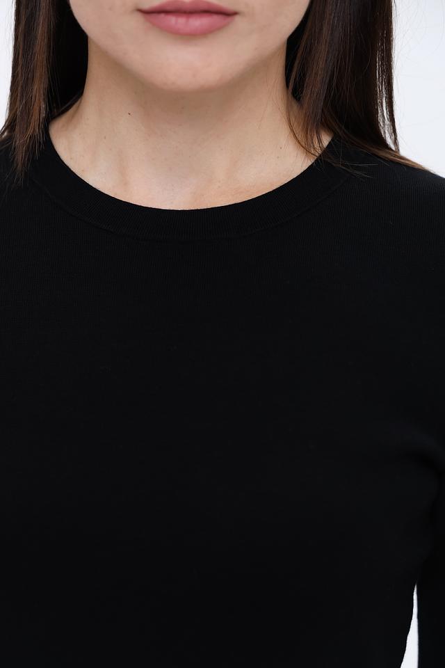 Платье имеет приталенный силуэт, который подчеркивает фигуру, и длинные рукава, обеспечивающие комфорт в прохладную погоду. Круглый вырез горловины делает образ более женственным и утонченным.
