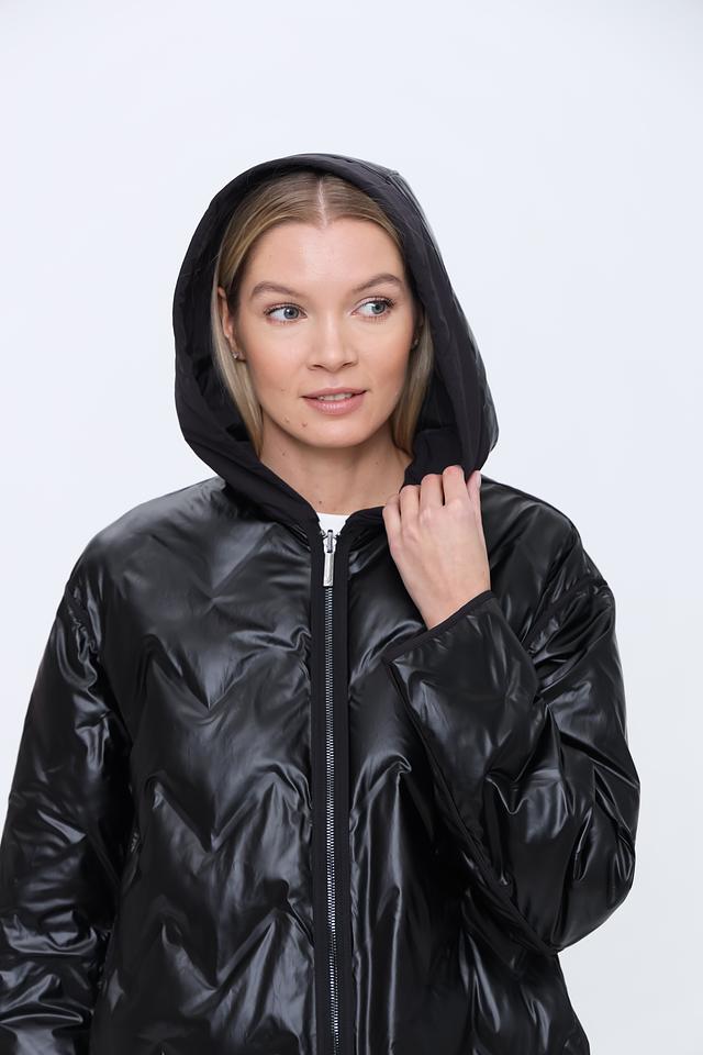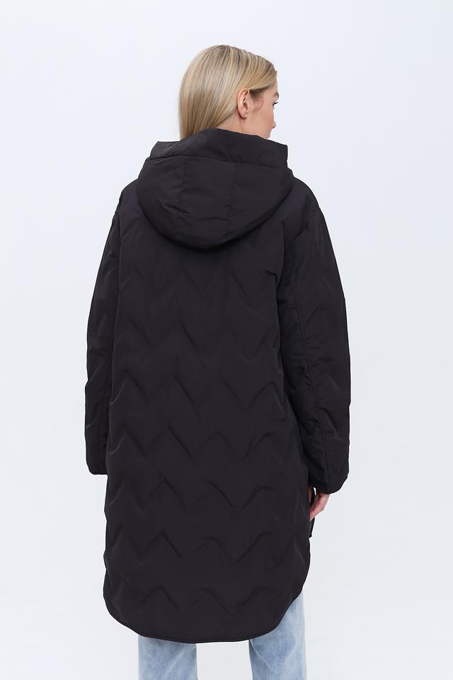 Модель оснащена удобным капюшоном, который защитит от ветра и дождя. Застёжка-молния позволяет легко регулировать степень теплоты. Пальто имеет длину до середины икры, что делает его подходящим для повседневной носки.