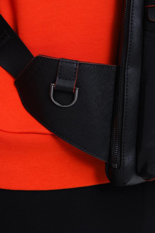 Чёрный цвет сумки дополнен яркими красными акцентами в виде отделки и логотипа бренда, что придает ей выразительный вид. Сумка оснащена регулируемым плечевым ремнем для комфортной носки. Вместительное основное отделение и дополнительные карманы позволяют удобно организовать личные вещи.
