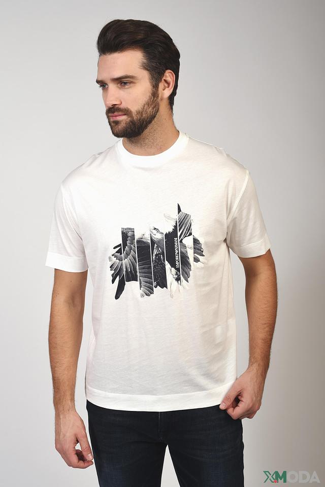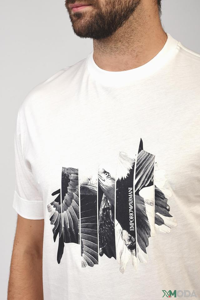 Белая футболка Emporio Armani с эффектным принтом в виде изображения орла. Изготовлена из 100% хлопка, обеспечивающего комфорт и воздухопроницаемость. Стильный и лаконичный дизайн. Состав: хлопок 100%