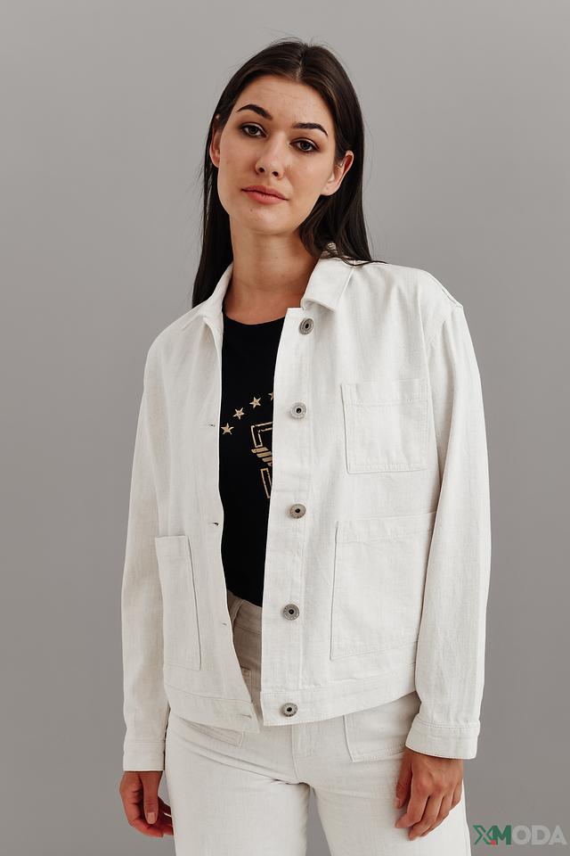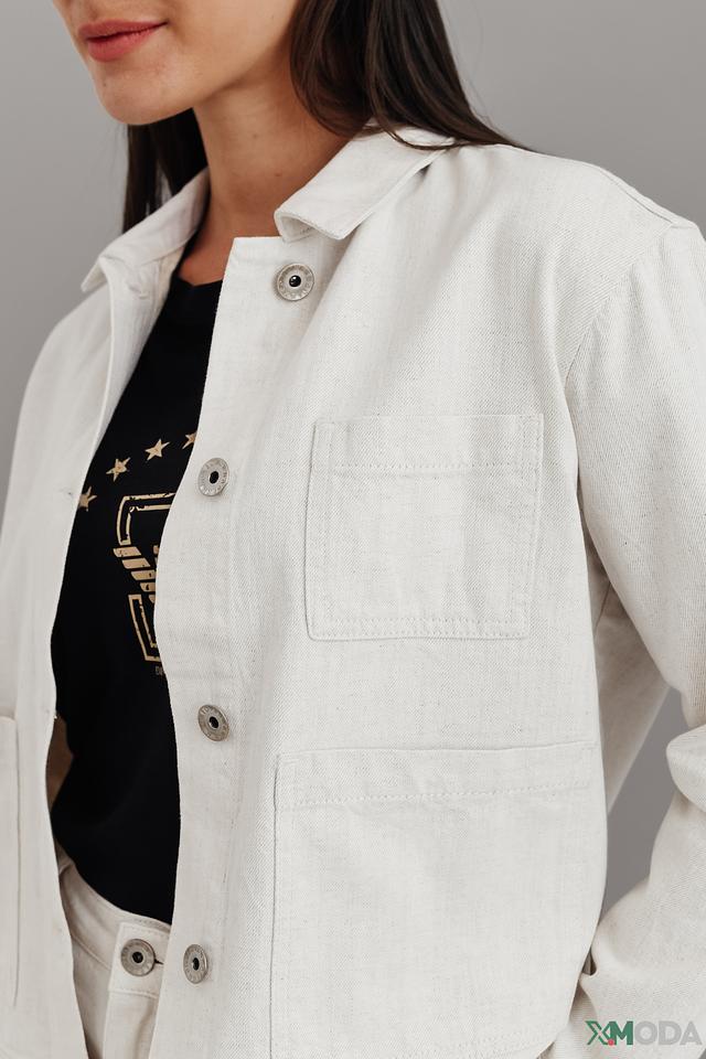 Куртка имеет прямой крой, отложной воротник и застегивается на пуговицы. Накладные карманы добавляют практичности и подчеркивают повседневный стиль. Минималистичный дизайн позволяет сочетать эту куртку с различными элементами одежды, создавая как casual, так и более элегантные образы.