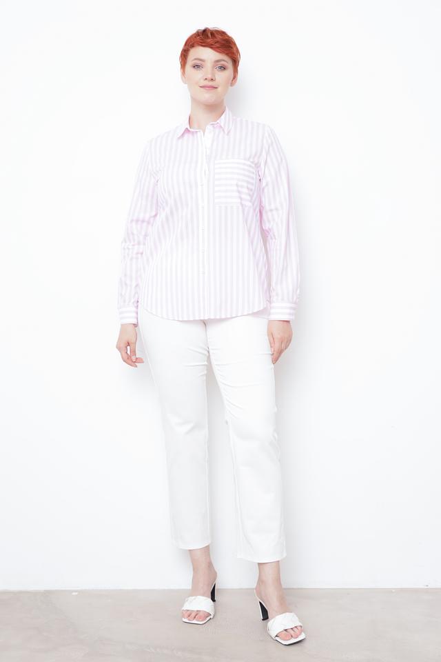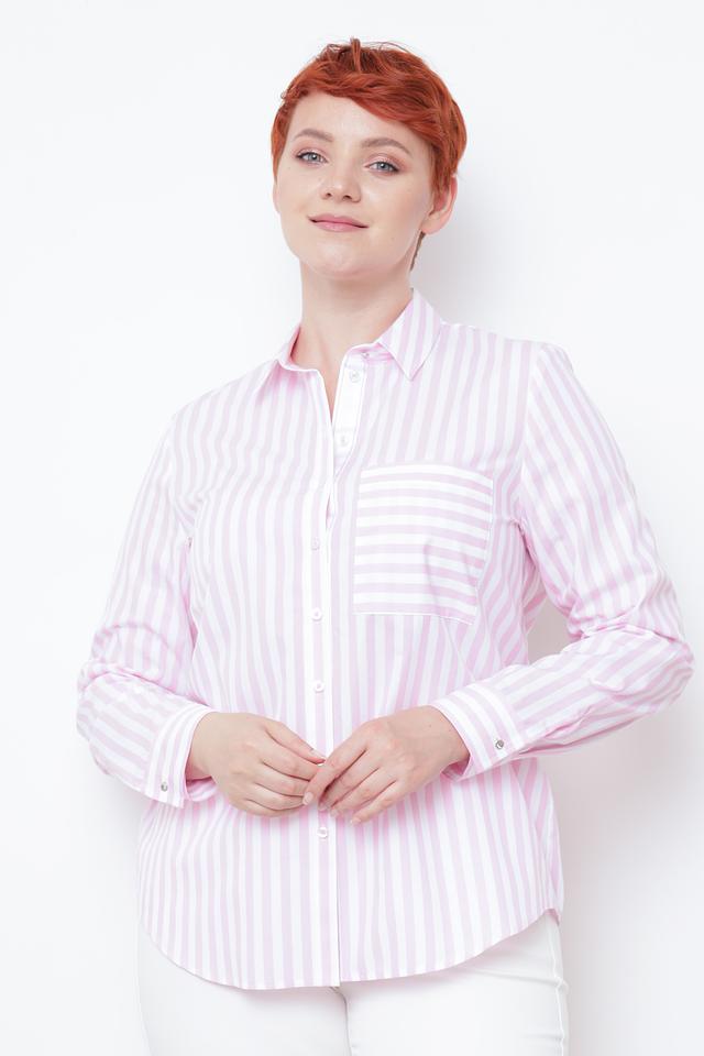 Блуза Erfo нежно-розового цвета в классическую полоску станет отличным дополнением к вашему гардеробу. Модель выполнена из 100% хлопка, что обеспечивает комфорт в носке и приятные ощущения на коже. Состав: хлопок 100%